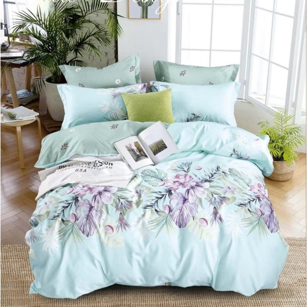 Lenjerie Pat Dublu, FINET, 6 piese, Bleu, flori, East Romania, cod produs: EST-FN-114
