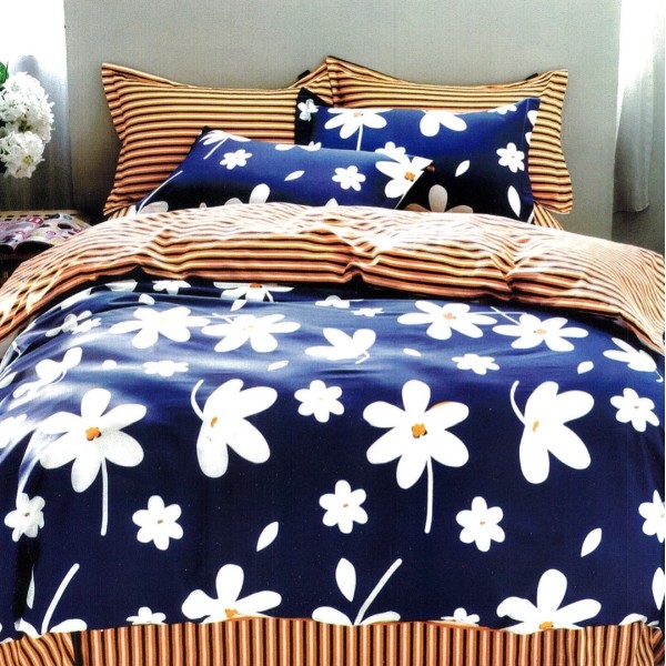 Lenjerie pat dublu, FINET, 6 piese, Bleumarin, flori, Alti producatori, cod produs: YNF43