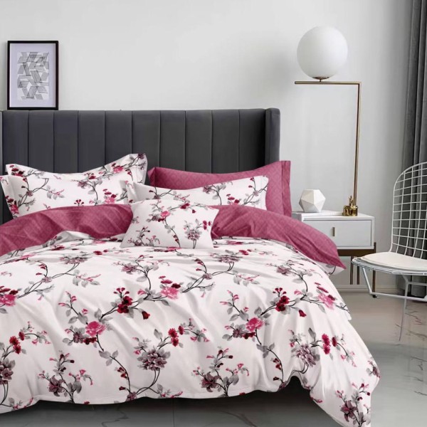 Lenjerie Pat Dublu, FINET, 6 piese, Bordo, roz, flori, East Romania, cod produs: EST-FN-230
