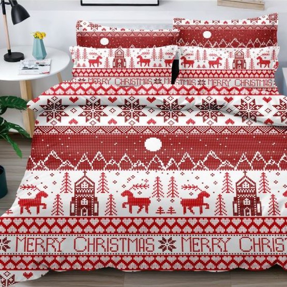 Lenjerie pat dublu, FINET, 6 piese, Craciun, Rosu, CumparaMisim, cod produs: SPR-Q60-26