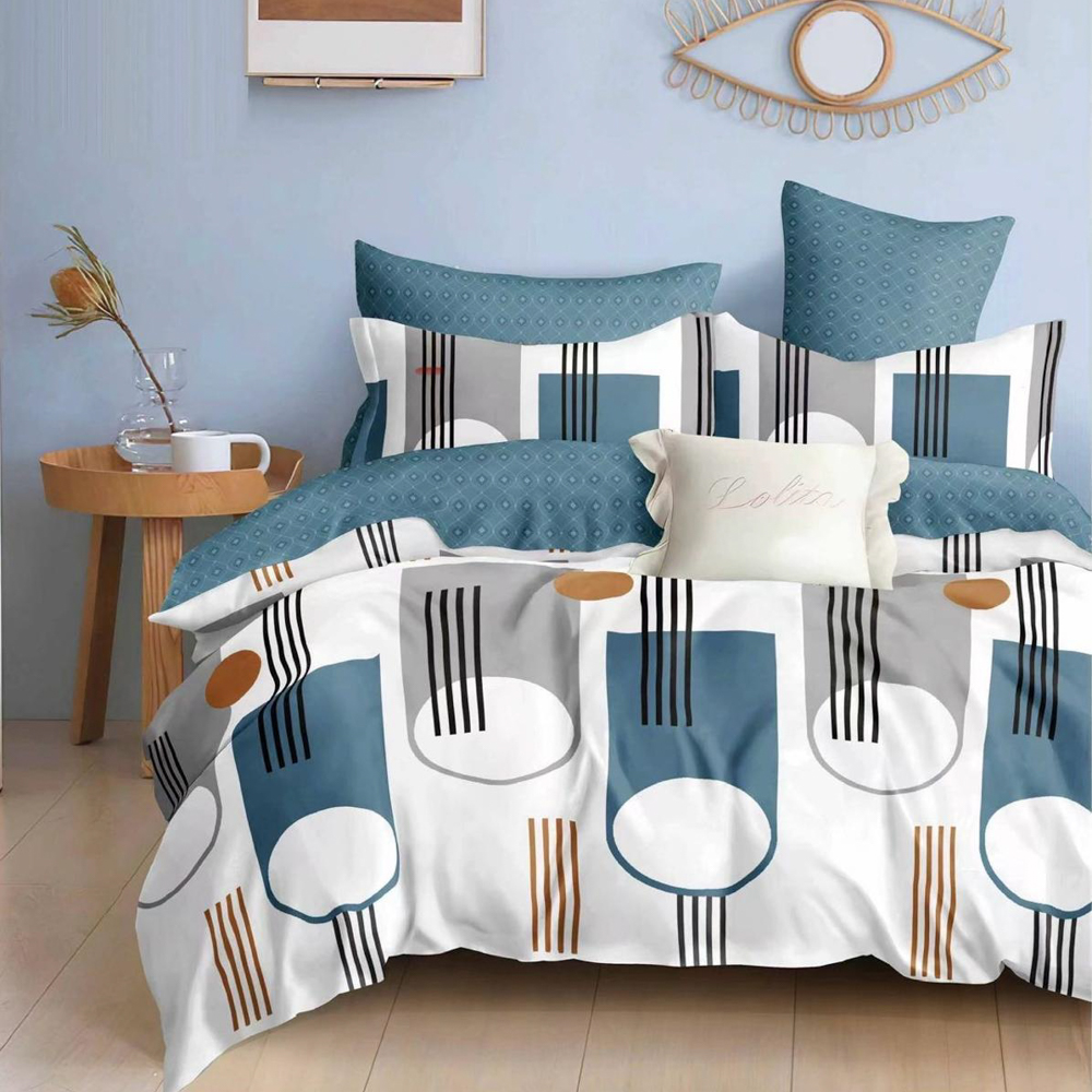 Lenjerie Pat Dublu, FINET, 6 piese, Crem, Albastru, forme geometrice, East Romania, cod produs: EST-FN-333