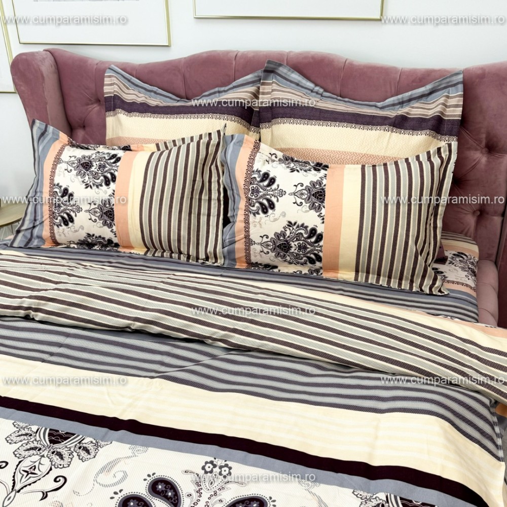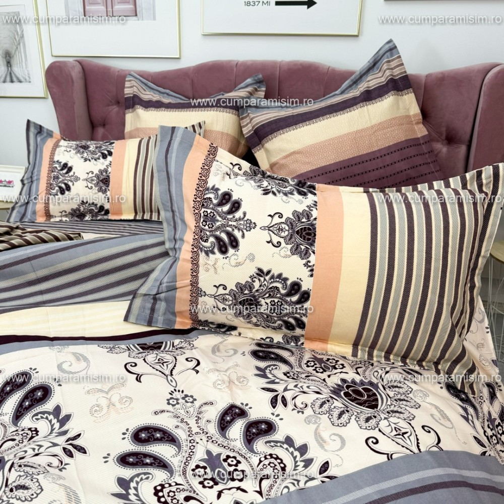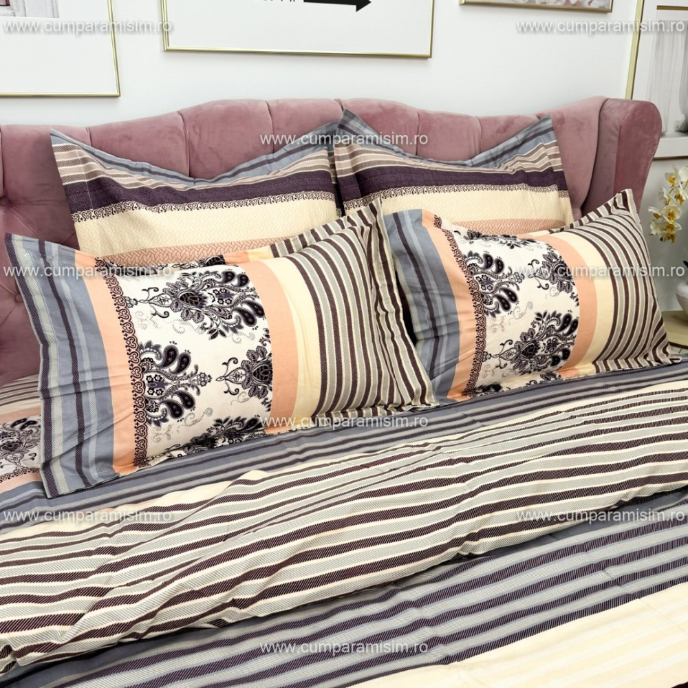 Iti recomandam cu incredere aceasta lenjerie pentru pat dublu cu 6 piese, confectionata din 100% bumbac, tesatura tip finet, ce cu siguranta va asigura esteticul perfect pentru dormitorul tau, prin design-ul modern si culorile rafinate.