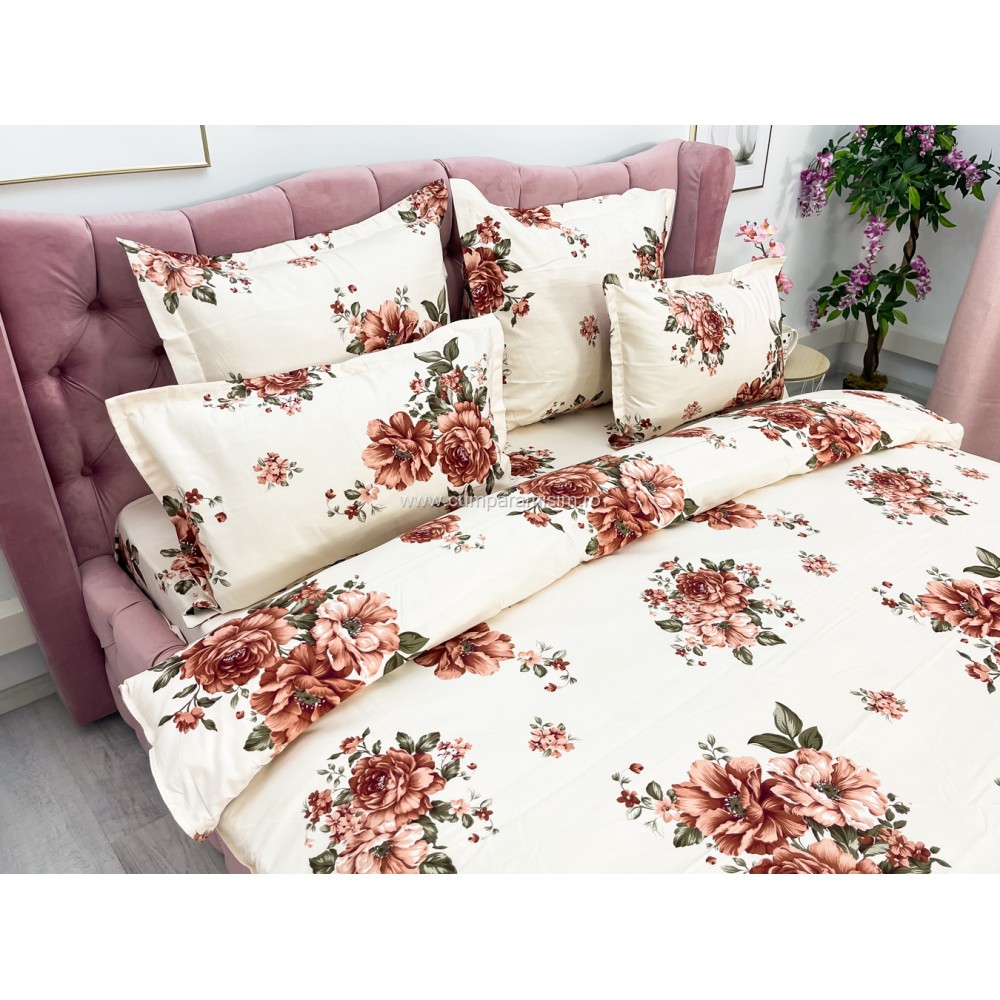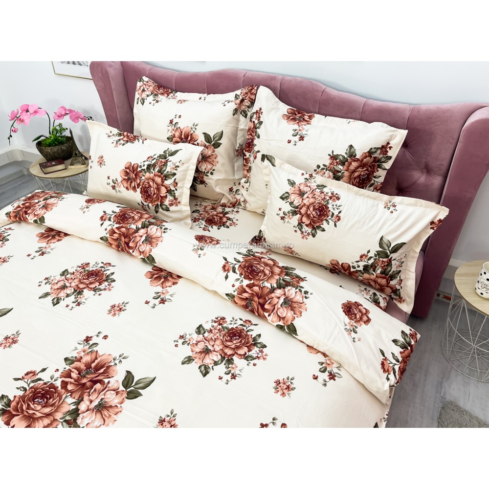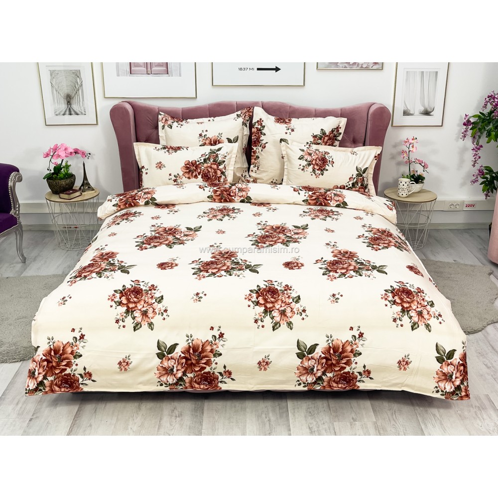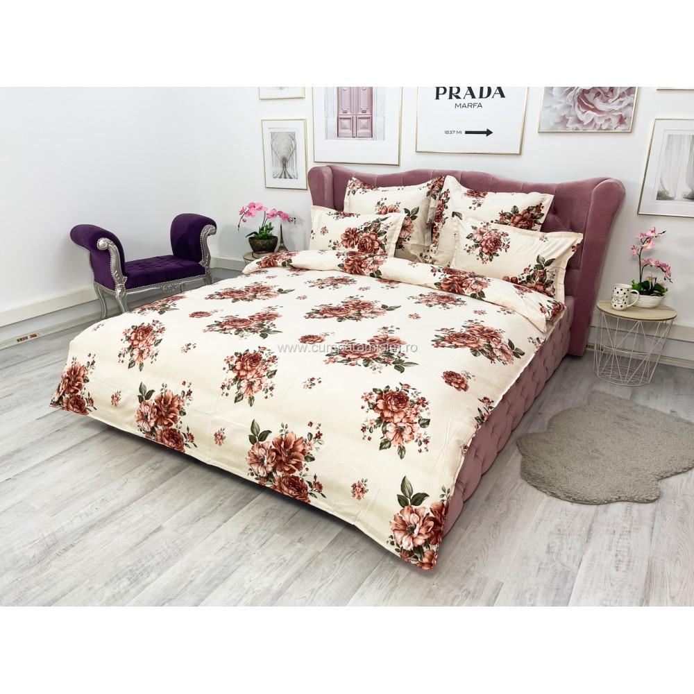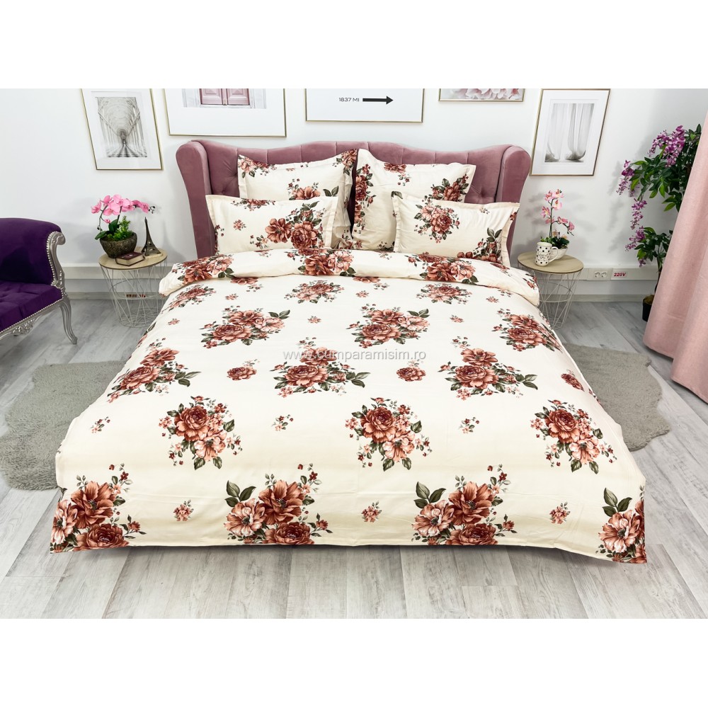 Lenjerie pat dublu, FINET, 6 piese, Crem-Multicolor, flori, Alti producatori, cod produs: YNF84