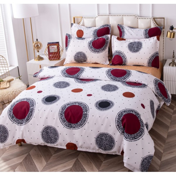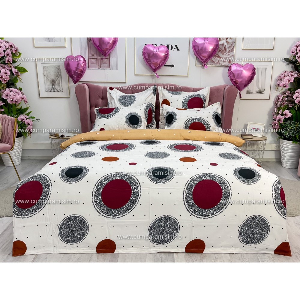 Lenjerie pat dublu, BUMBAC FINET, 6 piese, CU ELASTIC, Alb-Multicolor, cercuri, buline, Primavara Casa, cod produs: PTK44
