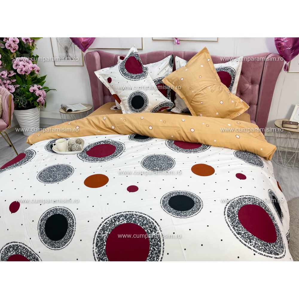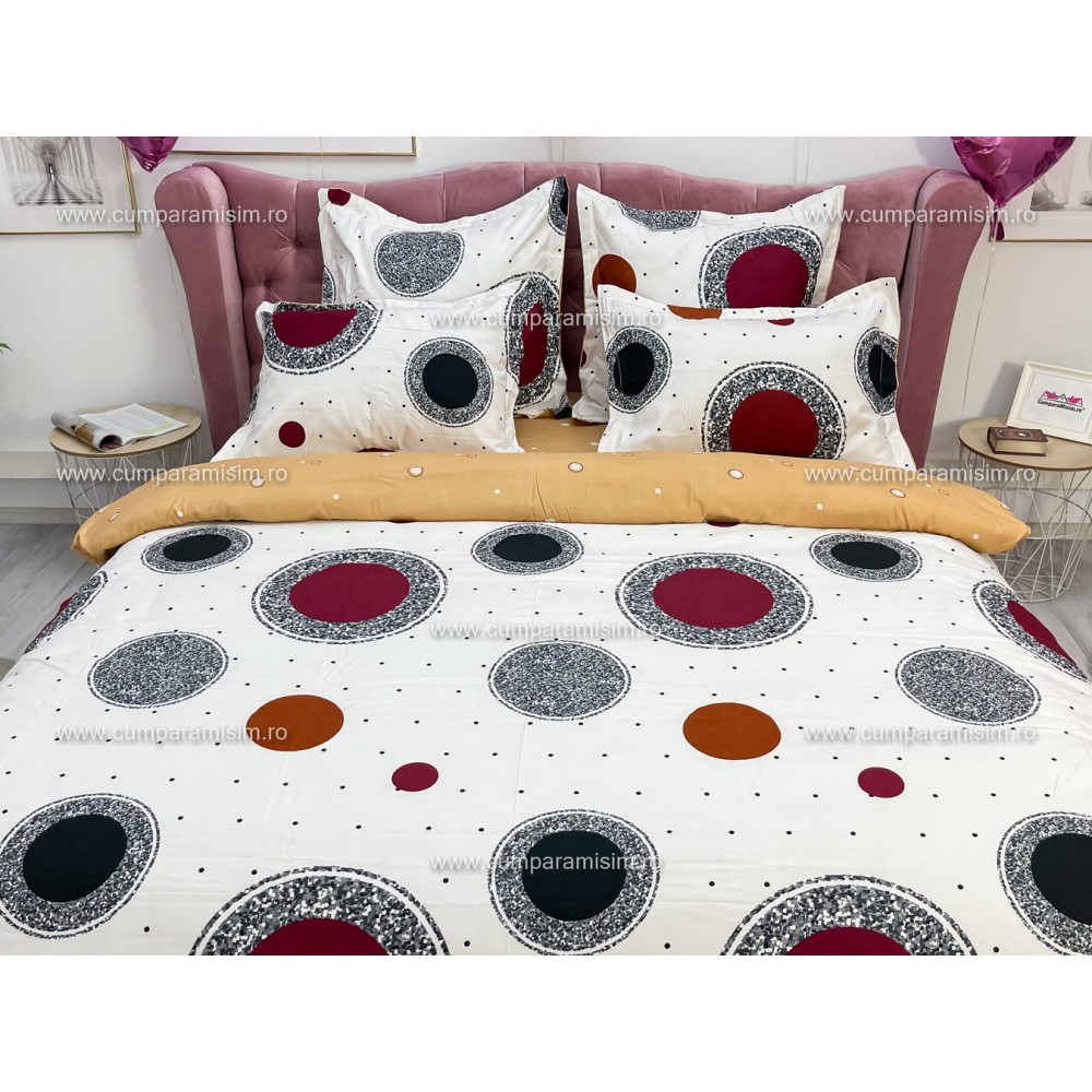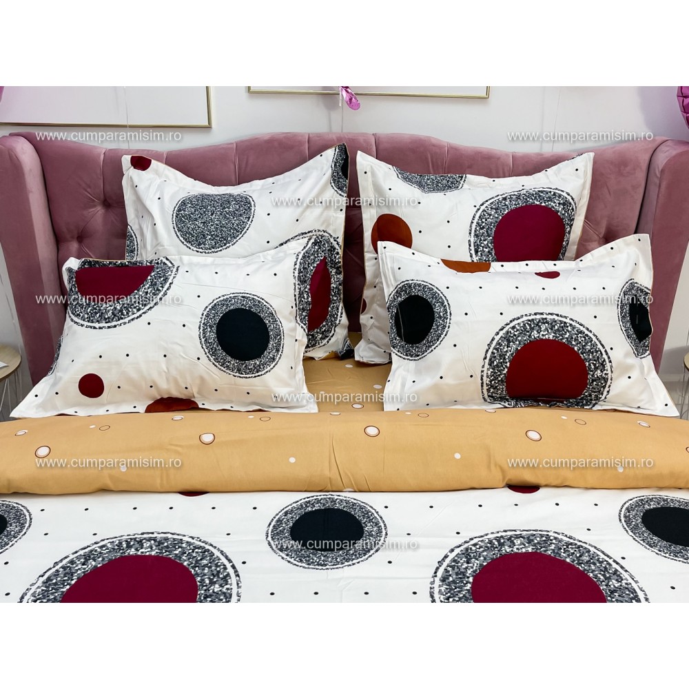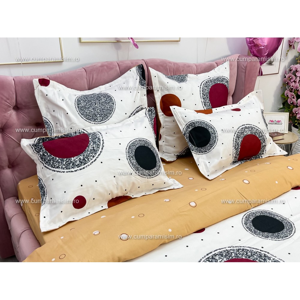 Iti recomandam cu incredere aceasta lenjerie pentru pat dublu cu 6 piese, confectionata din 100% bumbac, tesatura tip finet, ce cu siguranta va asigura esteticul perfect pentru dormitorul tau, prin design-ul modern si culorile rafinate.