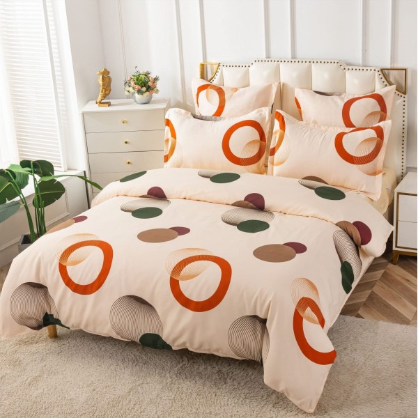 Lenjerie pat dublu, BUMBAC FINET, 6 piese, CU ELASTIC, Bej, cercuri, Primavara Casa, cod produs: PTK57