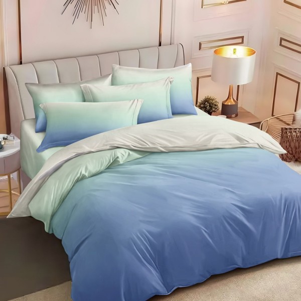 Lenjerie pat dublu, FINET, 6 piese, cu ELASTIC, Bleu, degrade, Johny Home Pucioasa, cod produs: SPR-T-282