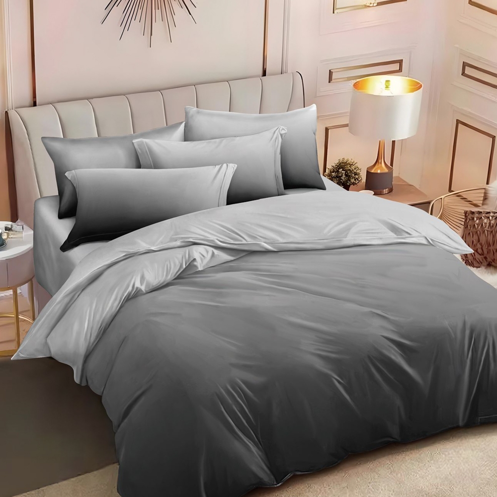 Lenjerie pat dublu, FINET, 6 piese, cu ELASTIC, Gri, degrade, Johny Home Pucioasa, cod produs: SPR-T-280