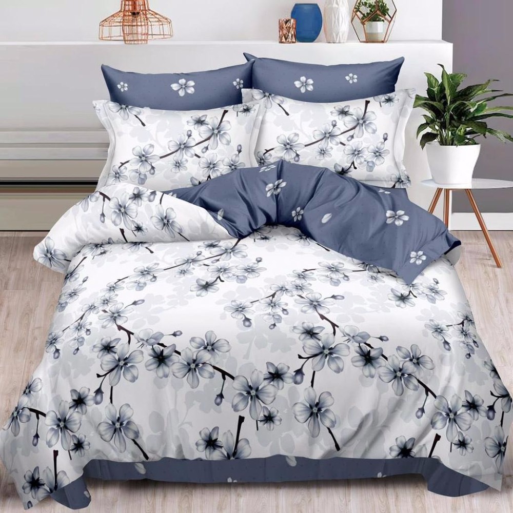 Lenjerie pat dublu, FINET, 6 piese, cu ELASTIC, Gri, flori, Johny Home Pucioasa, cod produs: SPR-T-167