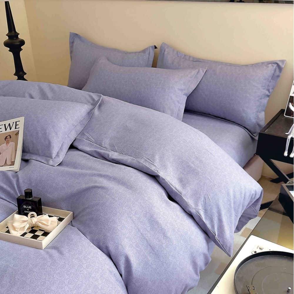 Lenjerie pat dublu, FINET, 6 piese, cu ELASTIC, Jojo Home, Lila, trandafiri, cod produs: JOF422