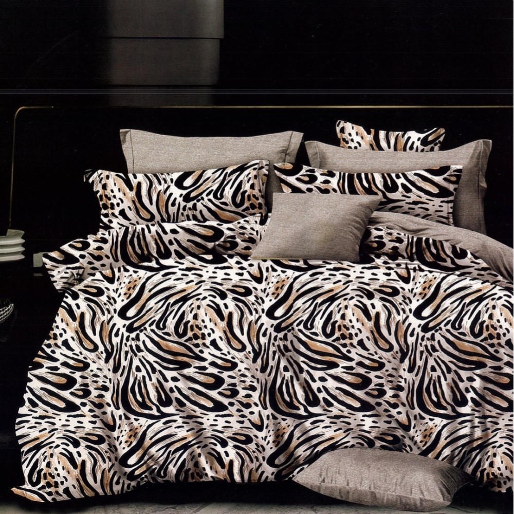 Lenjerie pat dublu, FINET, 6 piese, cu ELASTIC, Maro, animal print, Johny Home Pucioasa, cod produs: DKT50