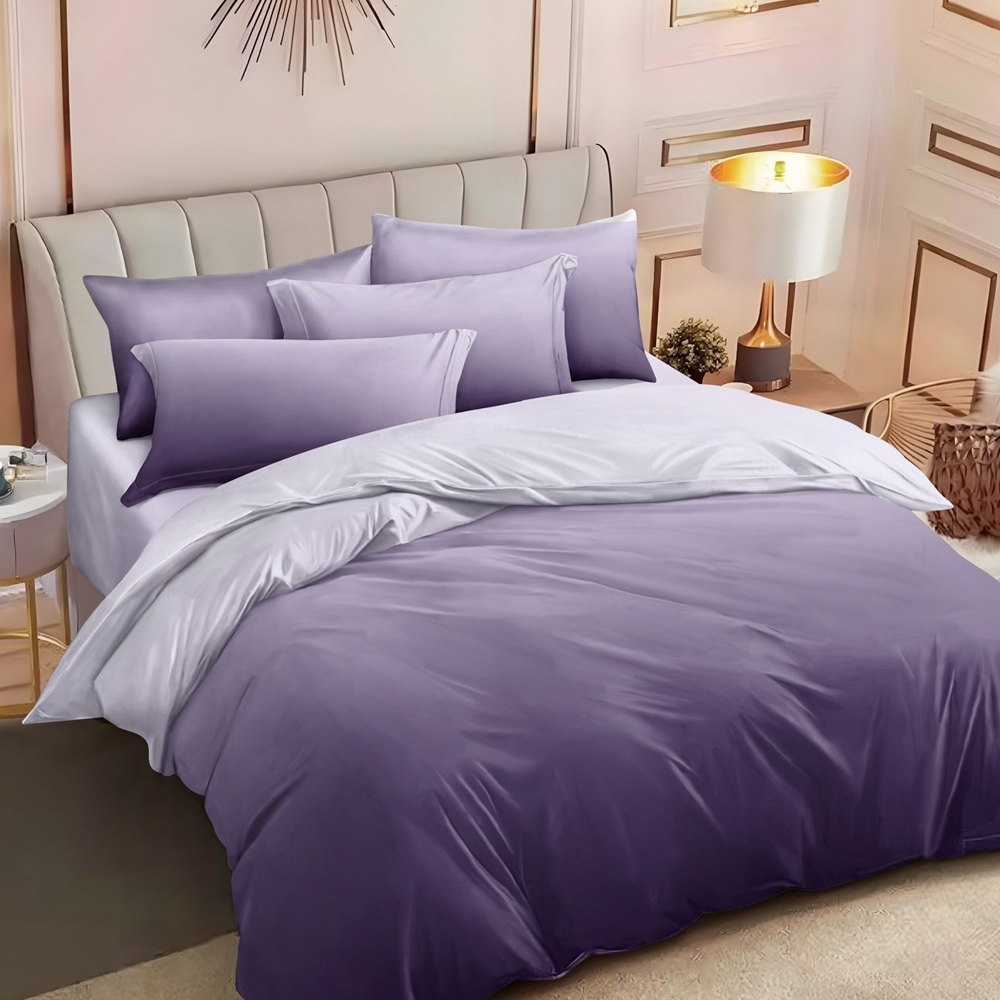 Lenjerie pat dublu, FINET, 6 piese, cu ELASTIC, Mov, degrade, Johny Home Pucioasa, cod produs: SPR-T-284