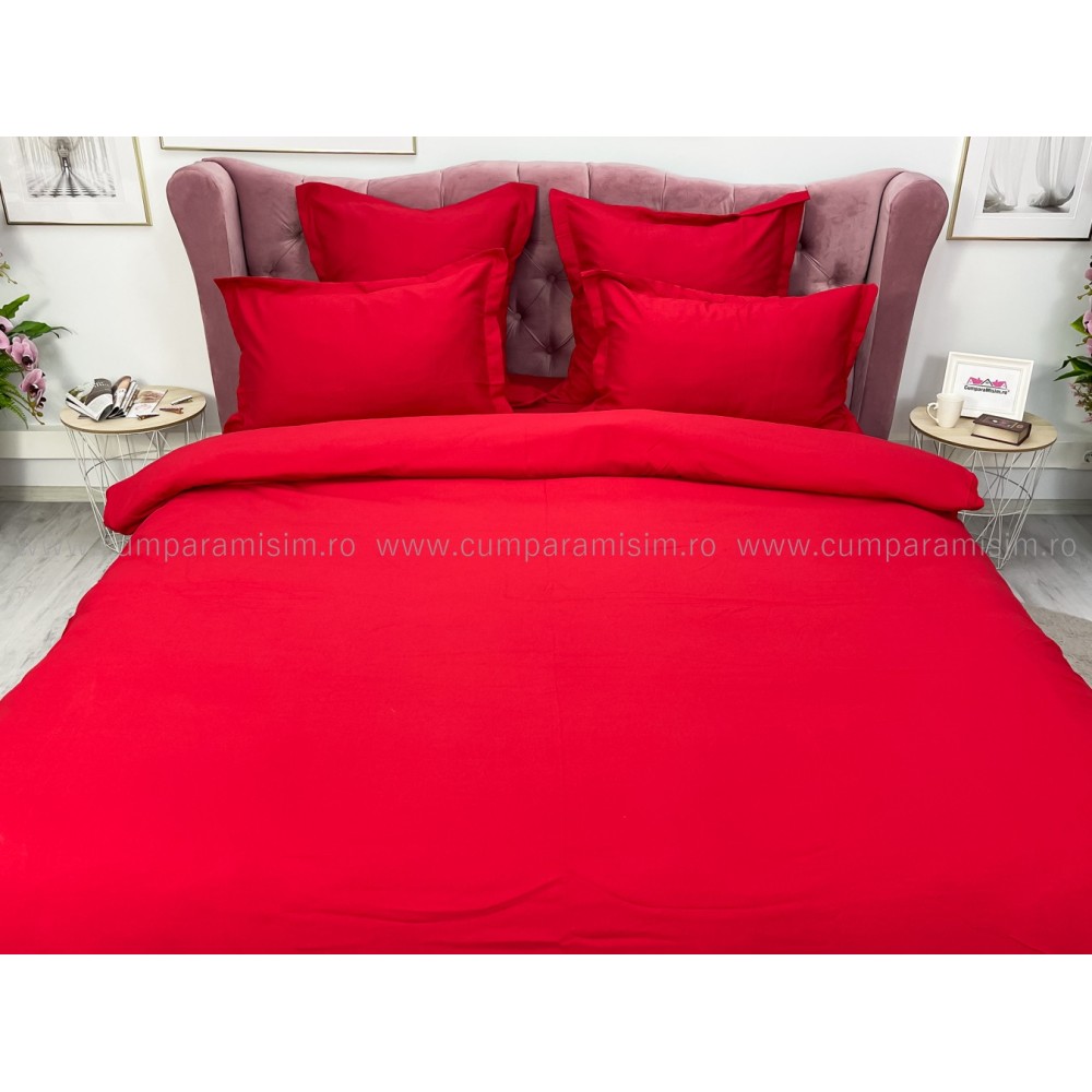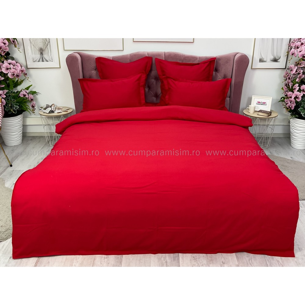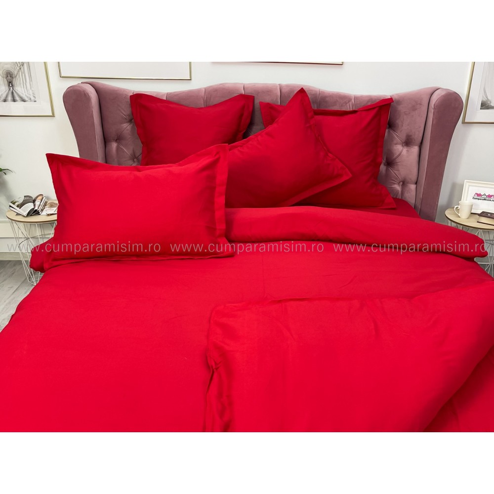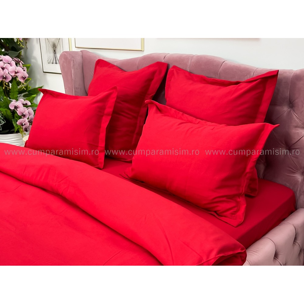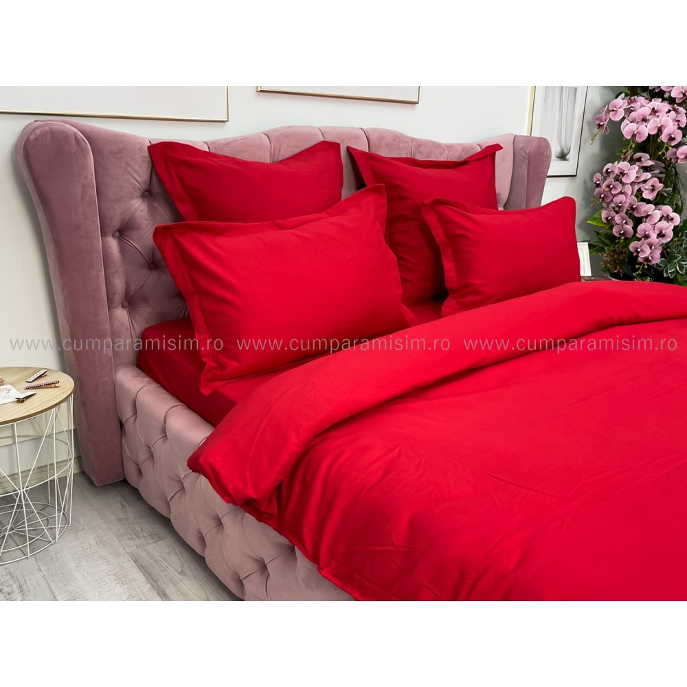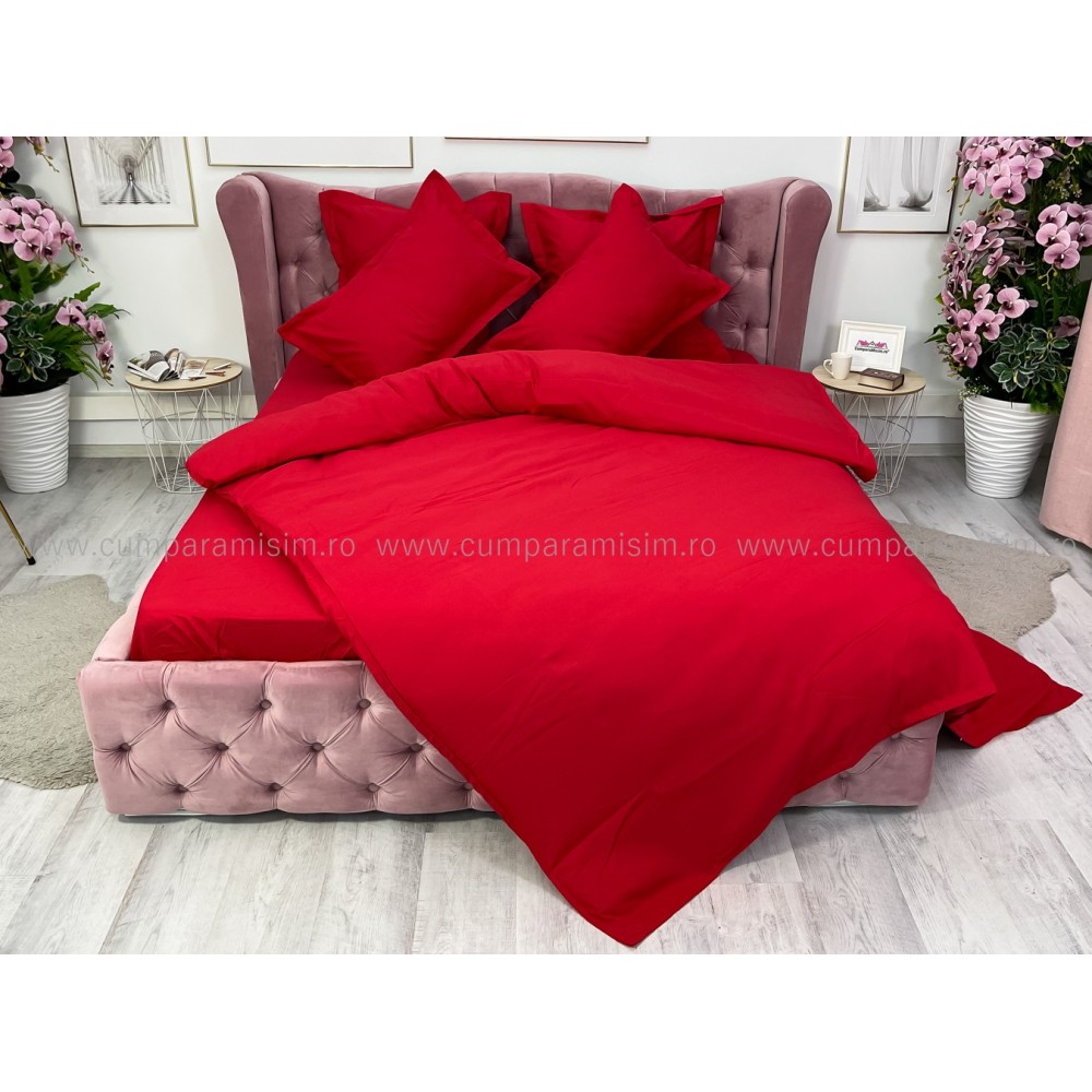 Lenjerie pat dublu, FINET, 6 piese, cu ELASTIC, Rosu, Johny Home Pucioasa, cod produs: SPR-T-175