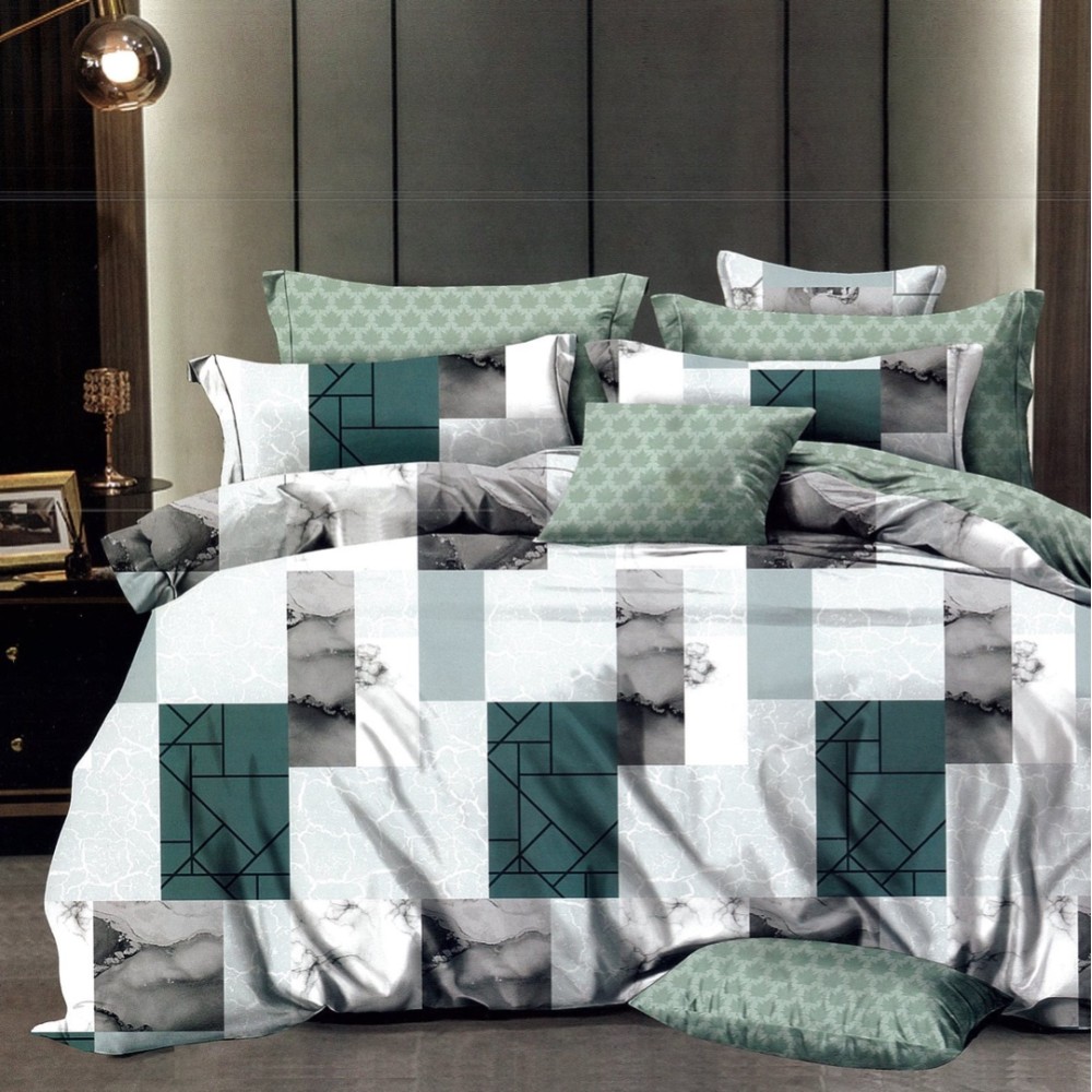 Lenjerie pat dublu, FINET, 6 piese, cu ELASTIC, Verde, abstract, Johny Home Pucioasa, cod produs: DKT40