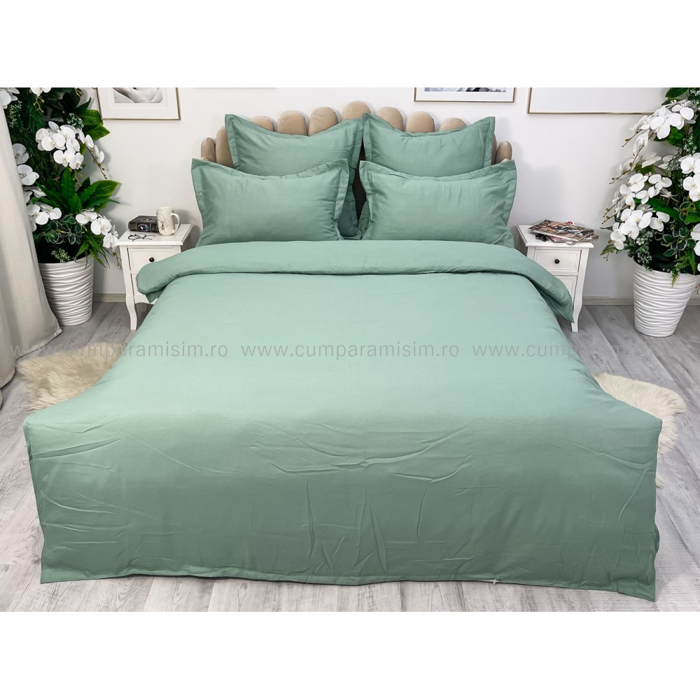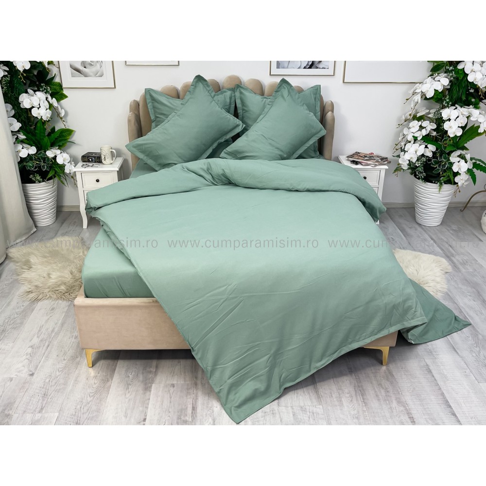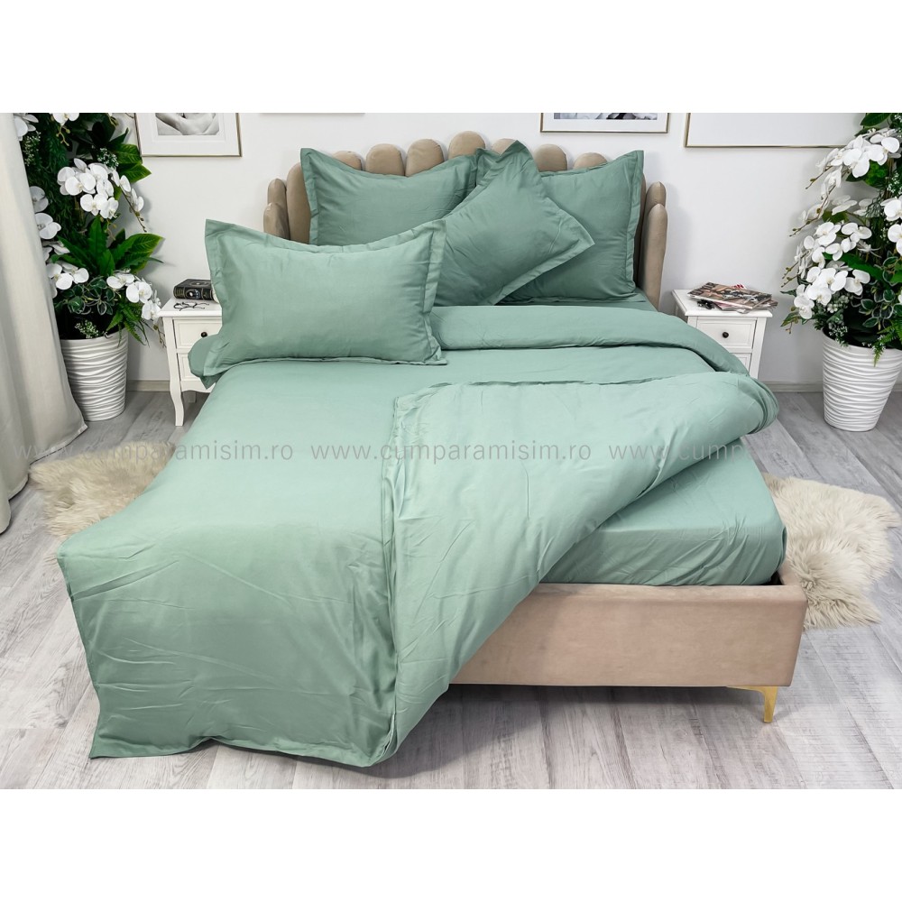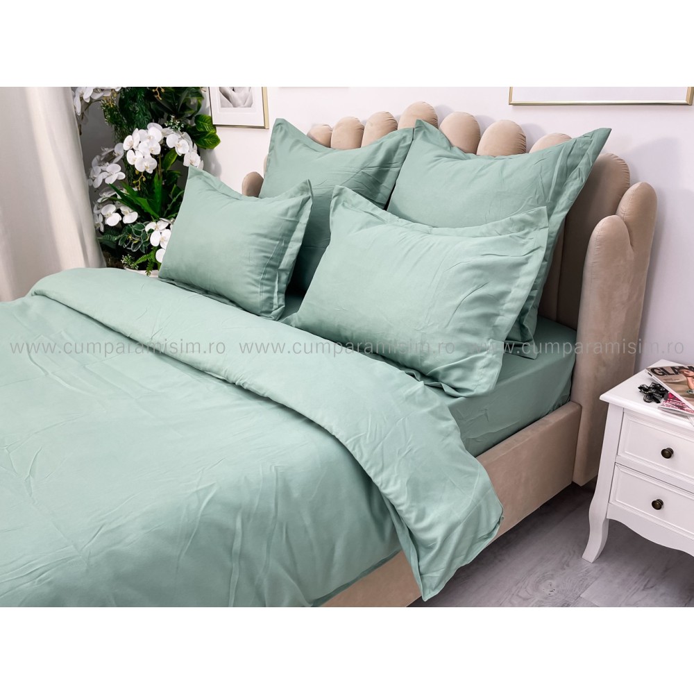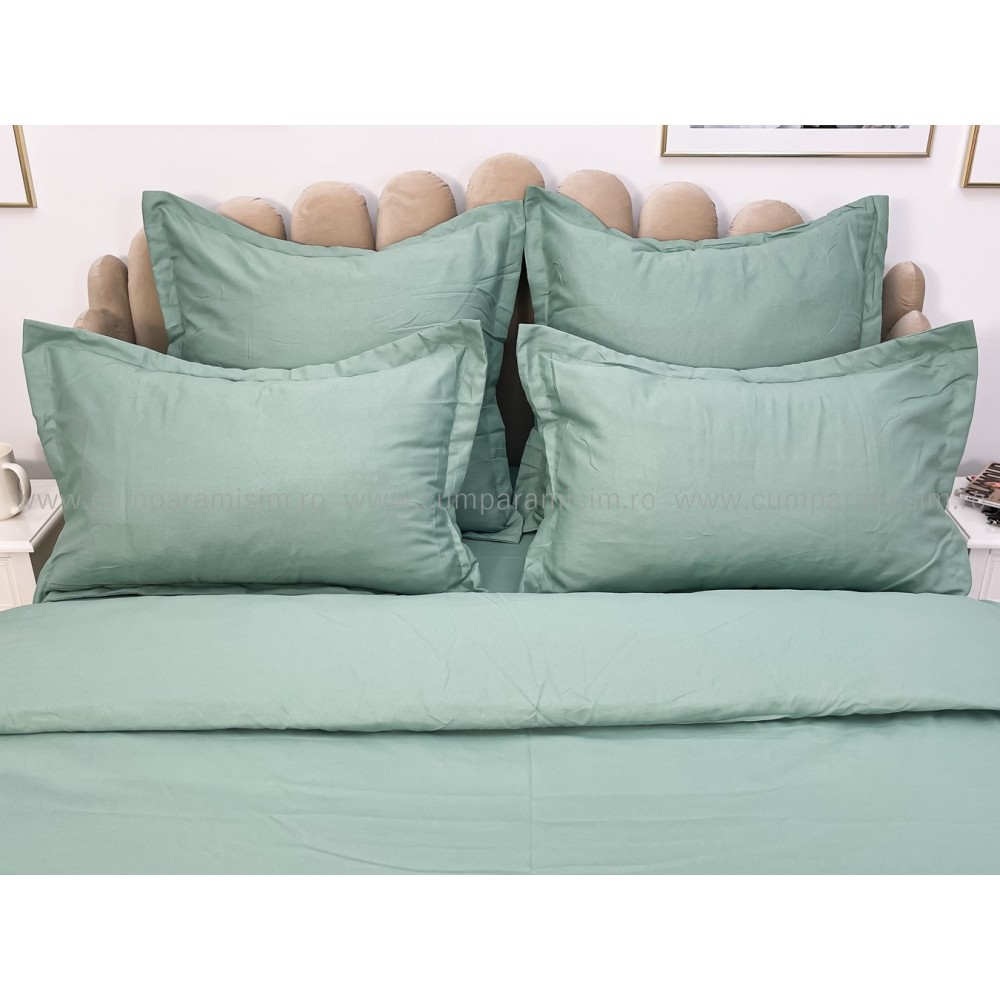 Lenjerie pat dublu, FINET, 6 piese, cu ELASTIC, Verde menta, Johny Home Pucioasa, cod produs: SPR-T-185