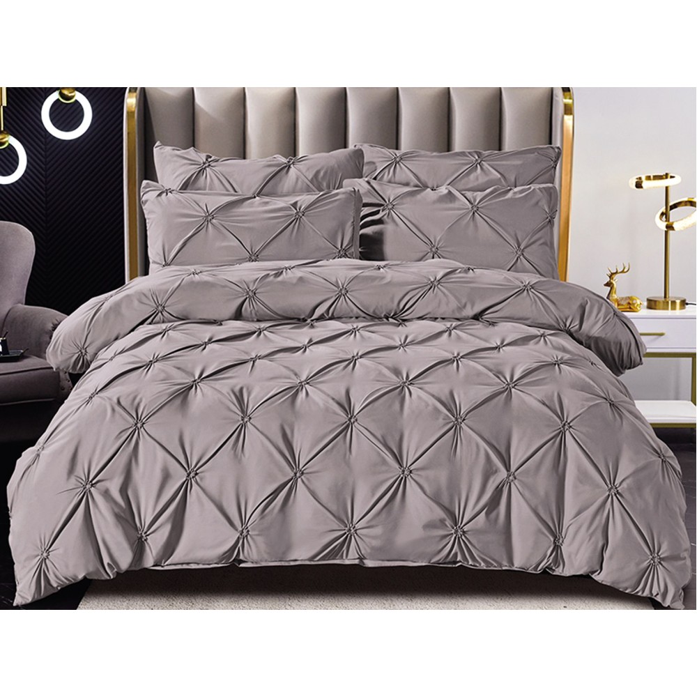 Lenjerie pat dublu, FINET, 6 piese, cu PLIURI BRODATE, Jojo Home, Gri deschis, cod produs: JOP14