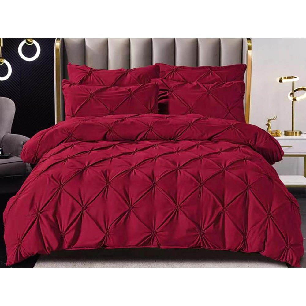 Lenjerie pat dublu, FINET, 6 piese, cu PLIURI BRODATE, Jojo Home, Visiniu, cod produs: JOP5