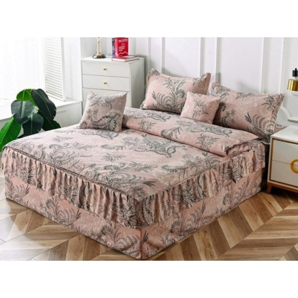Lenjerie pat dublu, FINET, 6 piese, cu VOLANASE, Bej-Gri, model elegant, Alti producatori, cod produs: PTV8