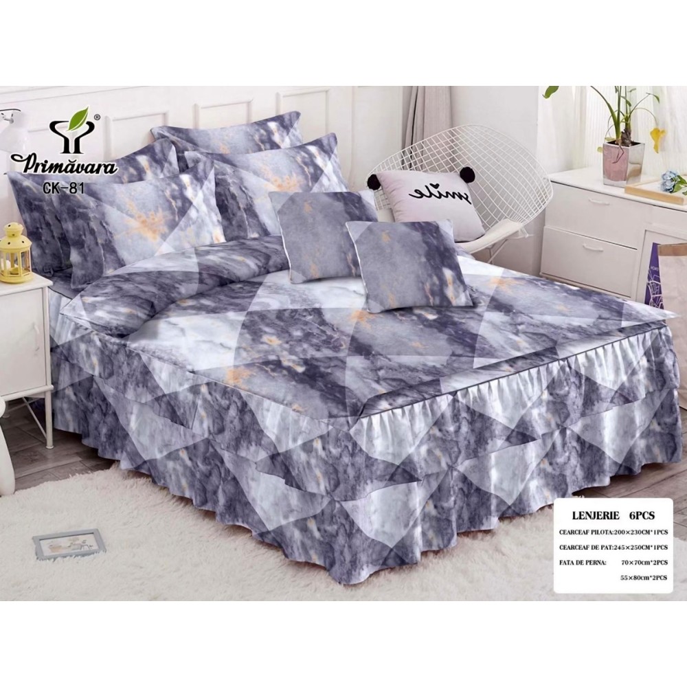 Lenjerie pat dublu, FINET, 6 piese, cu VOLANASE, Gri, forme geometrice, Primavara Casa, cod produs: PRV31