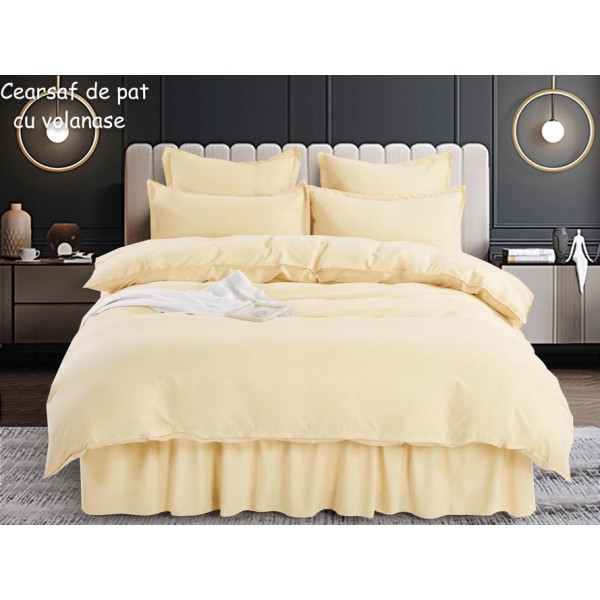 Aceasta lenjerie de pat este una dintre cele mai potrivite alegeri, oferind atat un confort ridicat, cat si un aspect estetic foarte placut, datorita volanasului aplicat pe marginile cearsafului de pat.