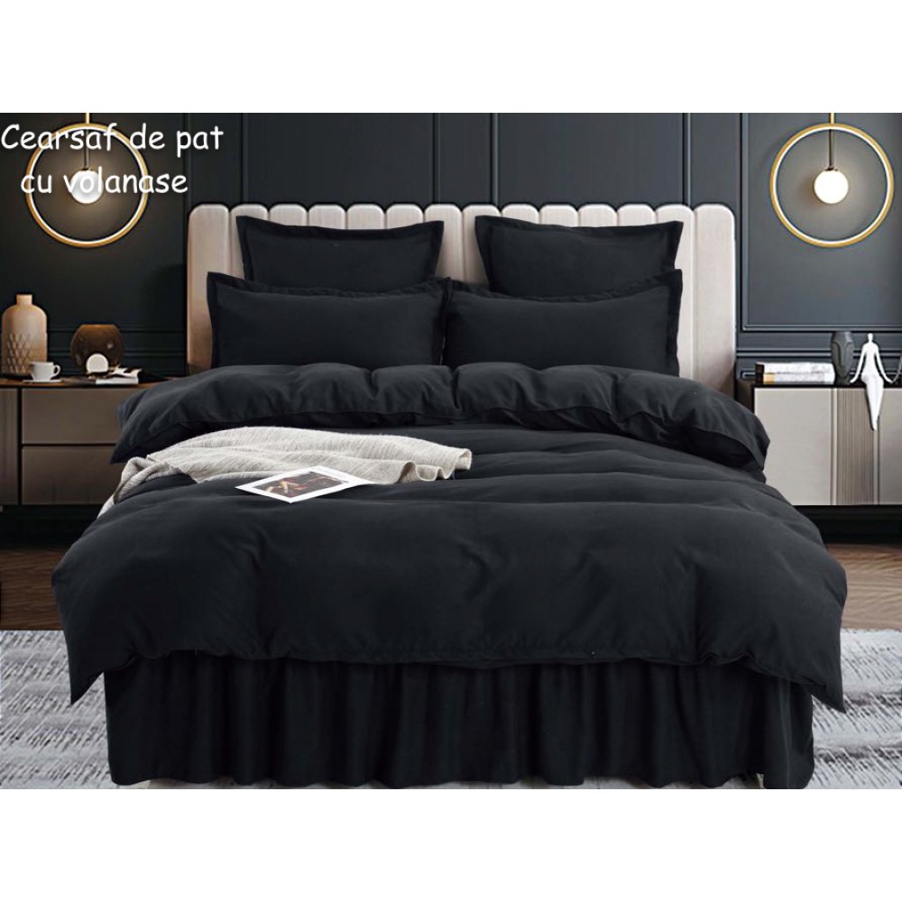Lenjerie pat dublu, FINET, 6 piese, cu volanase, Jojo Home, Negru, cod produs: JOU8