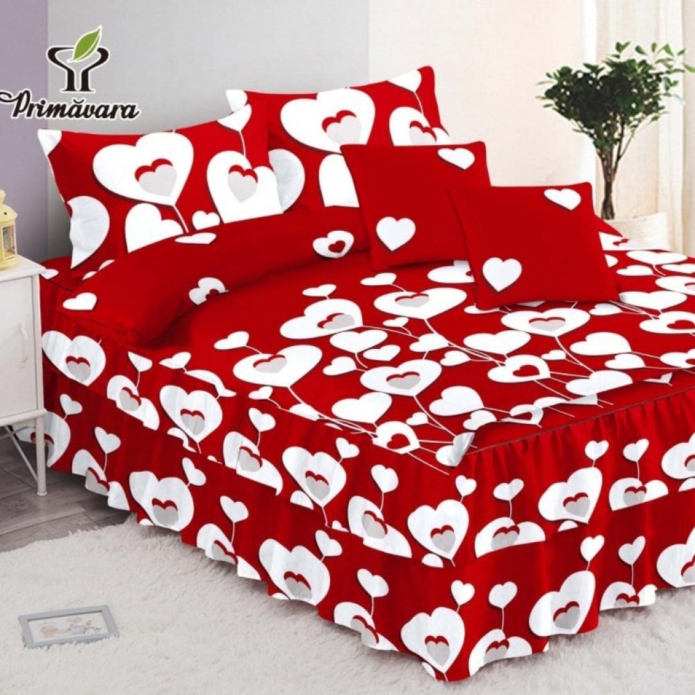 Lenjerie pat dublu, FINET, 6 piese, cu VOLANASE, Rosu, inimioare, Primavara Casa, cod produs: PRV59