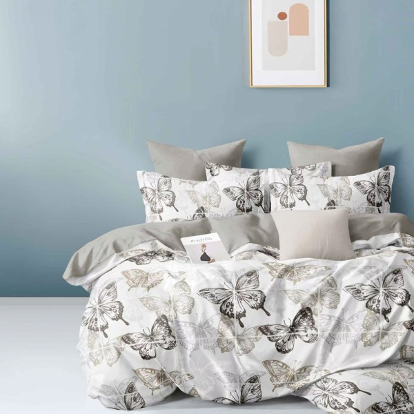 Lenjerie Pat Dublu, FINET, 6 piese, Grej, fluturi, East Romania, cod produs: EST-FN-359