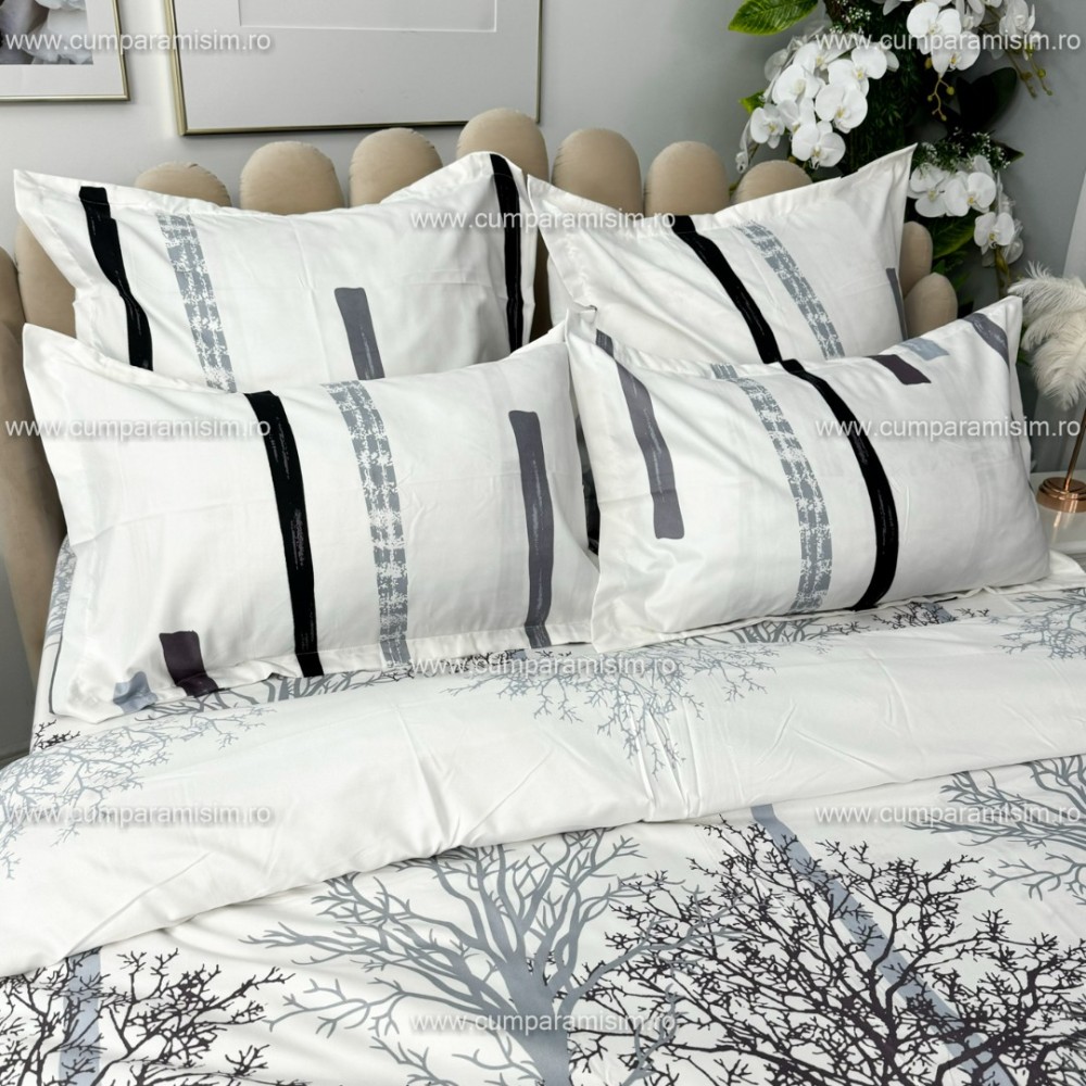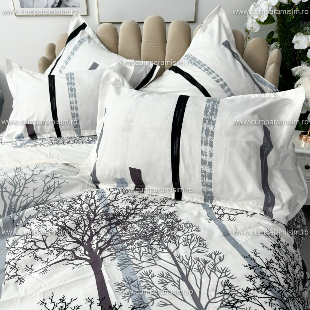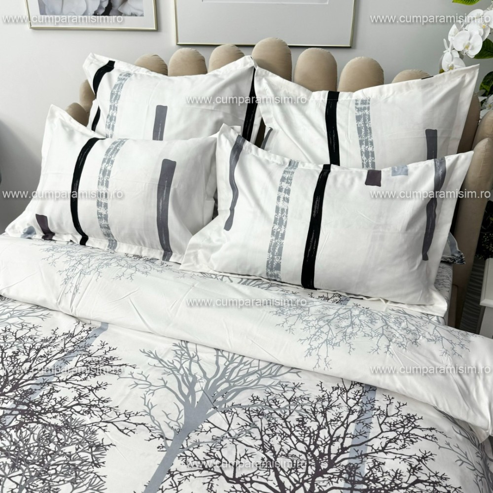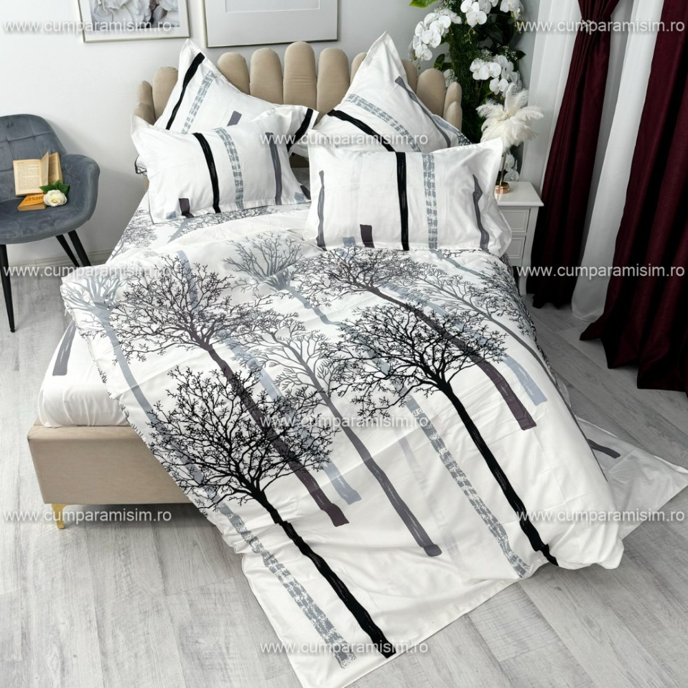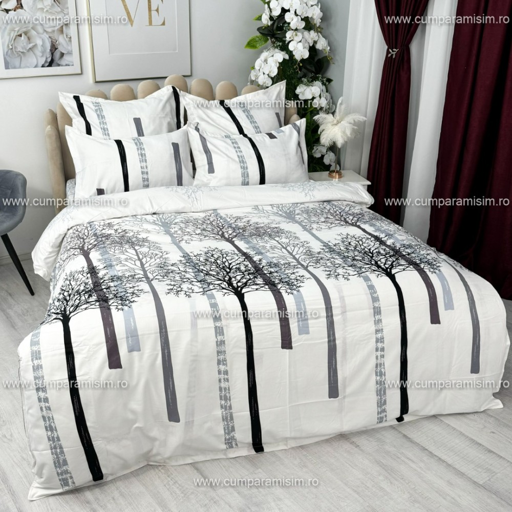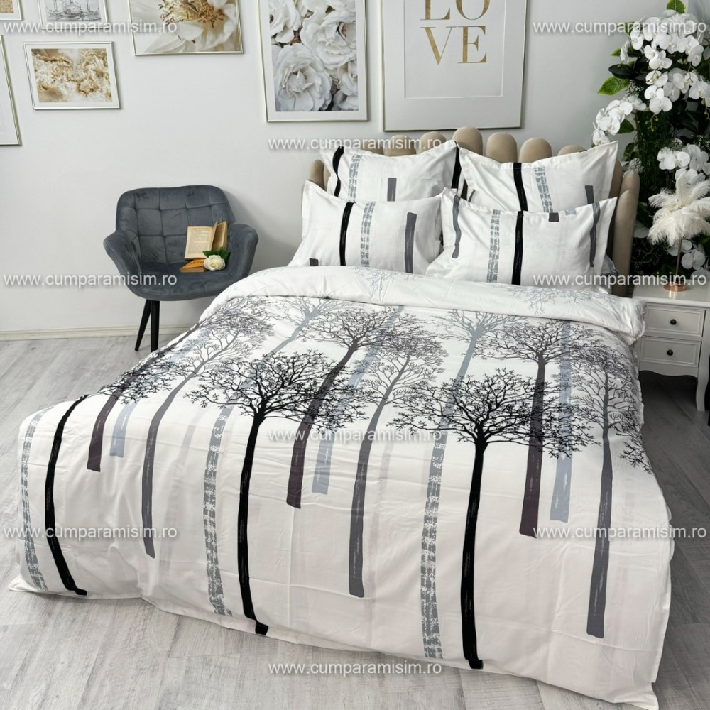 Lenjerie pat dublu, FINET, 6 piese, Gri, copaci, Alti producatori, cod produs: YNF9