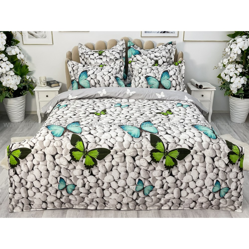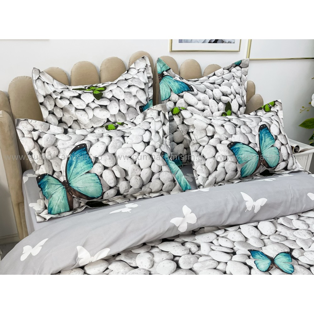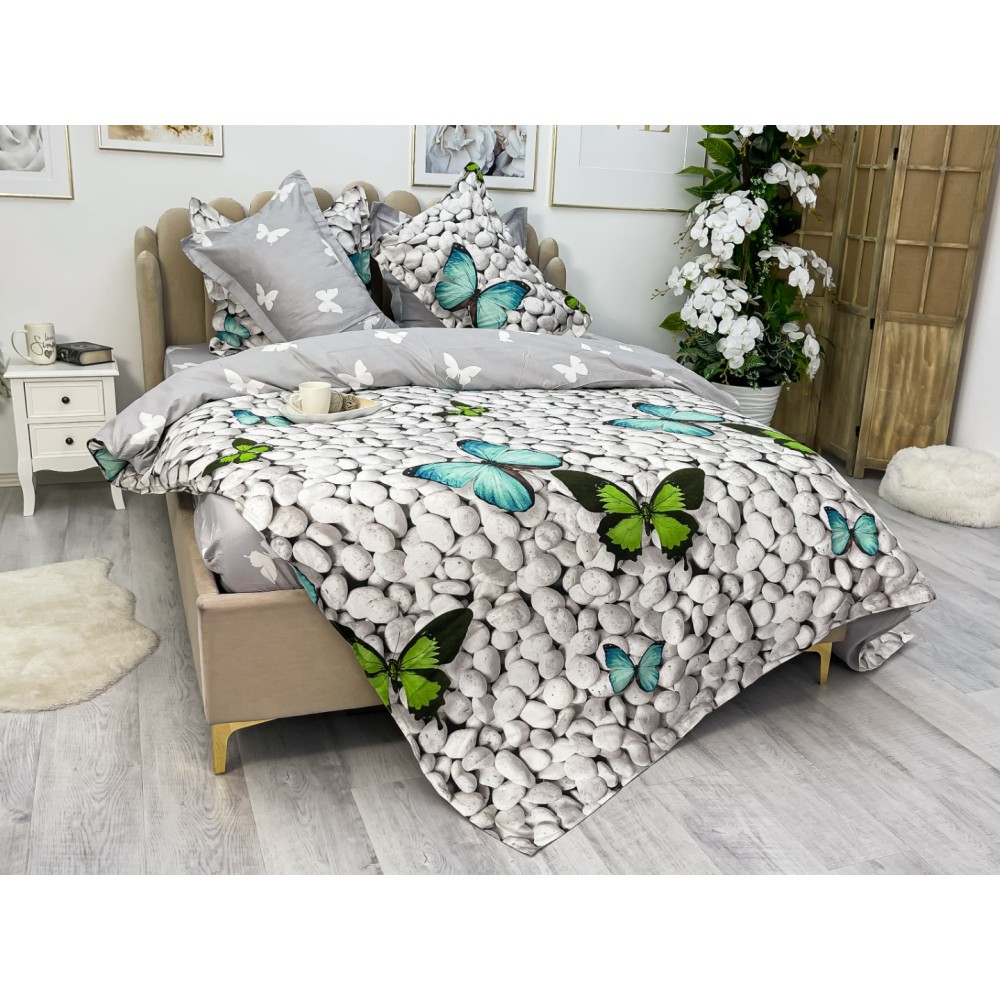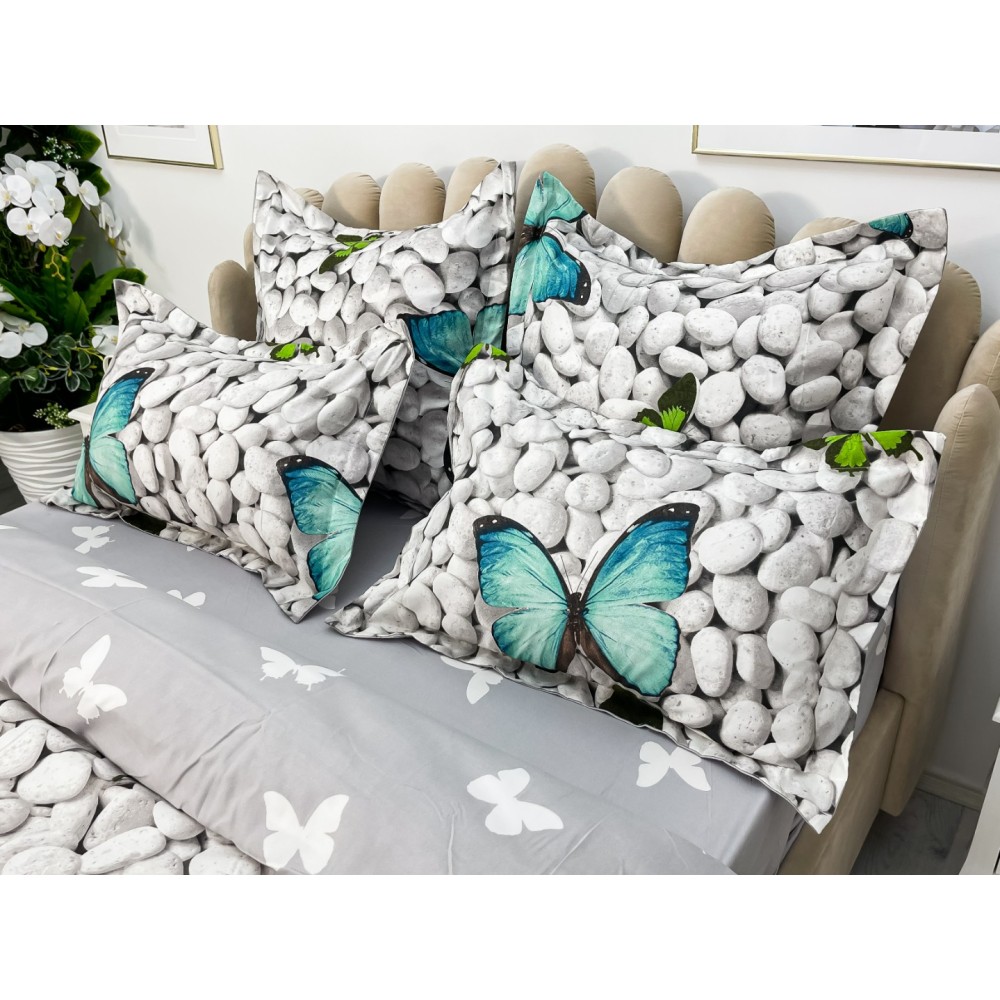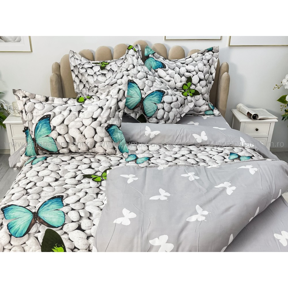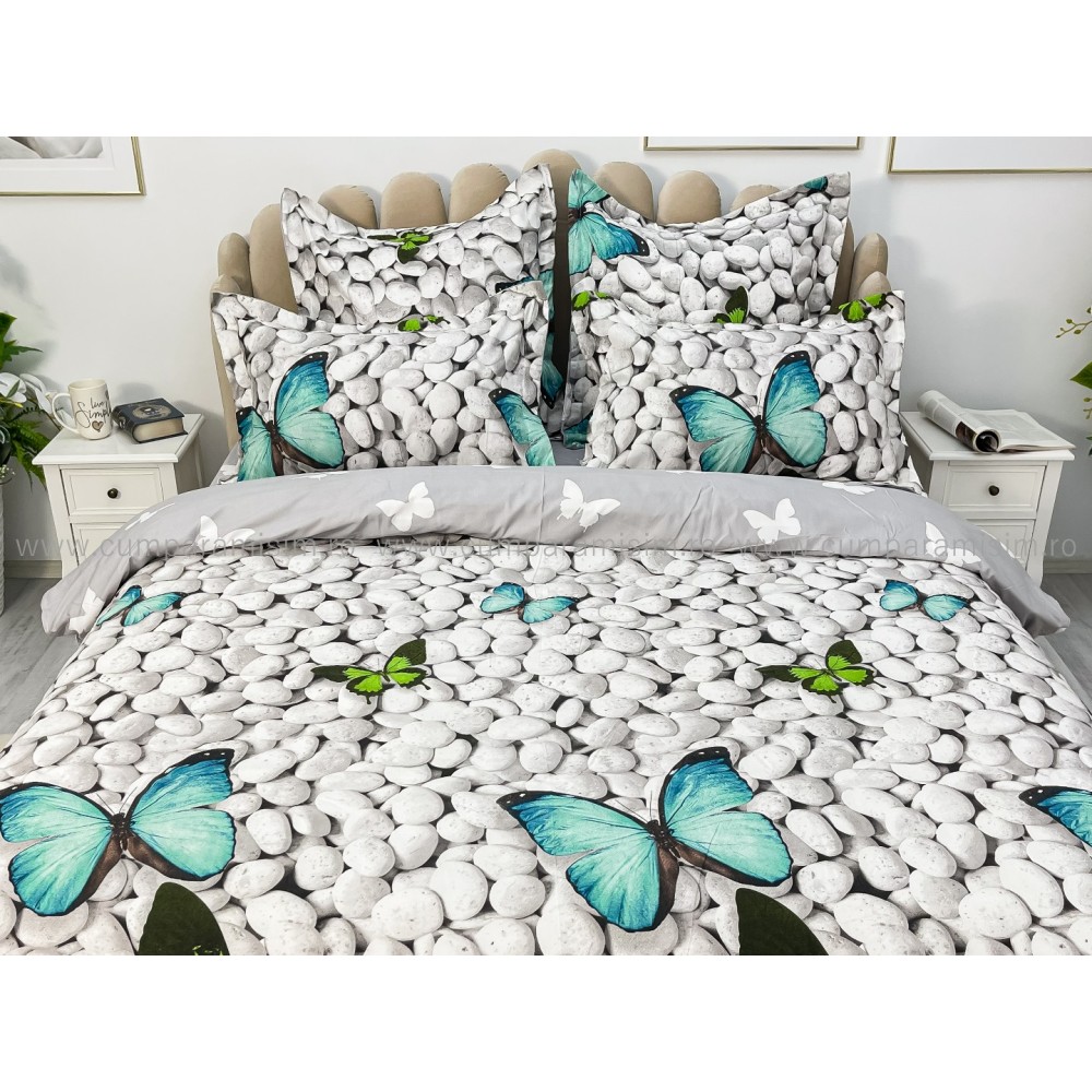 Lenjerie pat dublu, FINET, 6 piese, Gri, fluturi, pietre, Johny Home Pucioasa, cod produs: SPR-R60-224