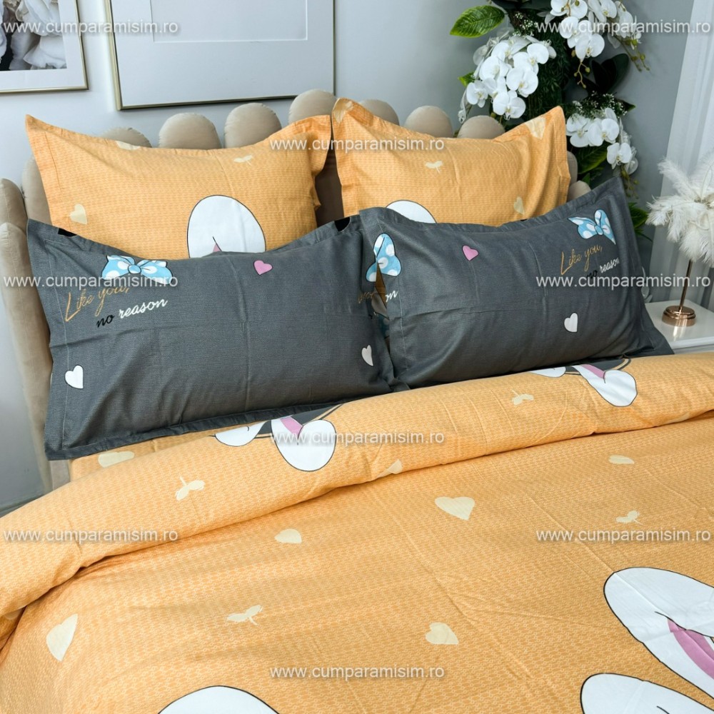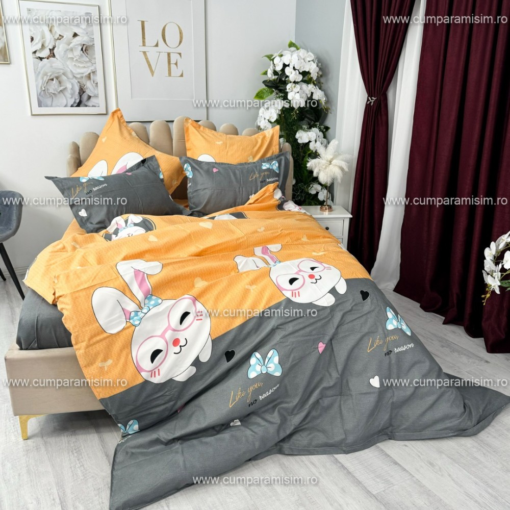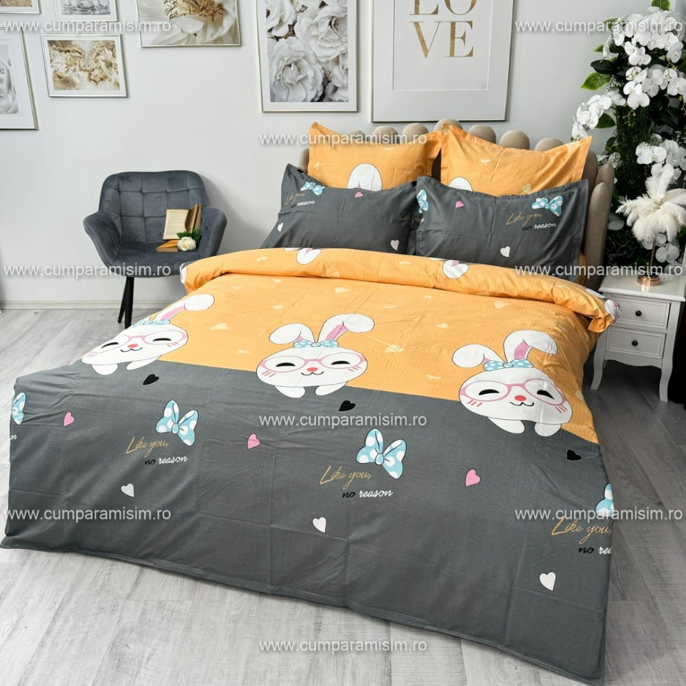 Lenjerie pat dublu, FINET, 6 piese, Gri, iepurasi, Alti producatori, cod produs: YNF15