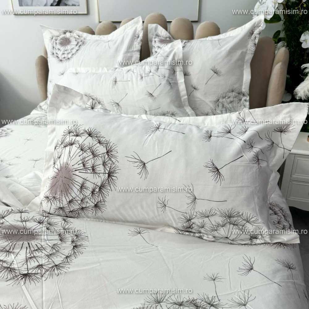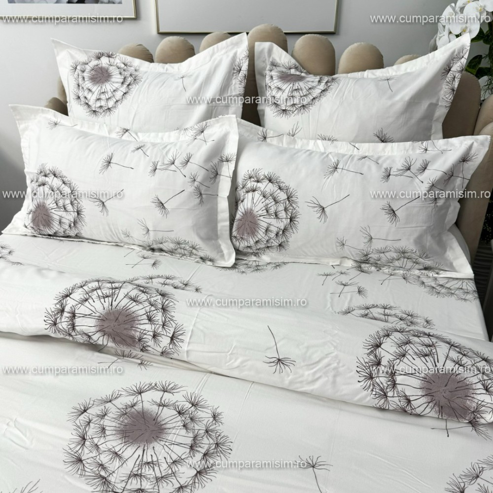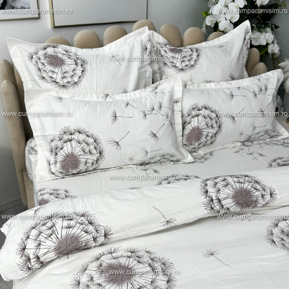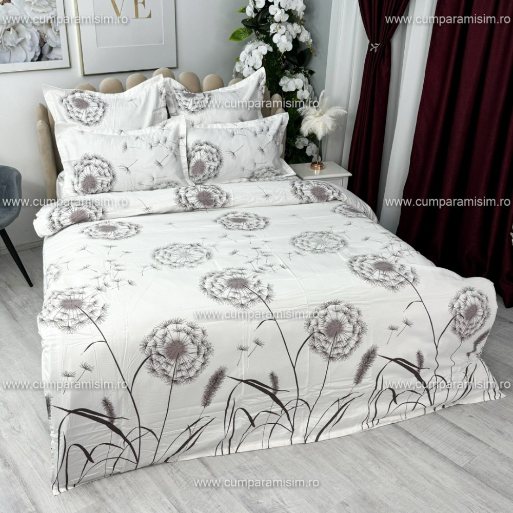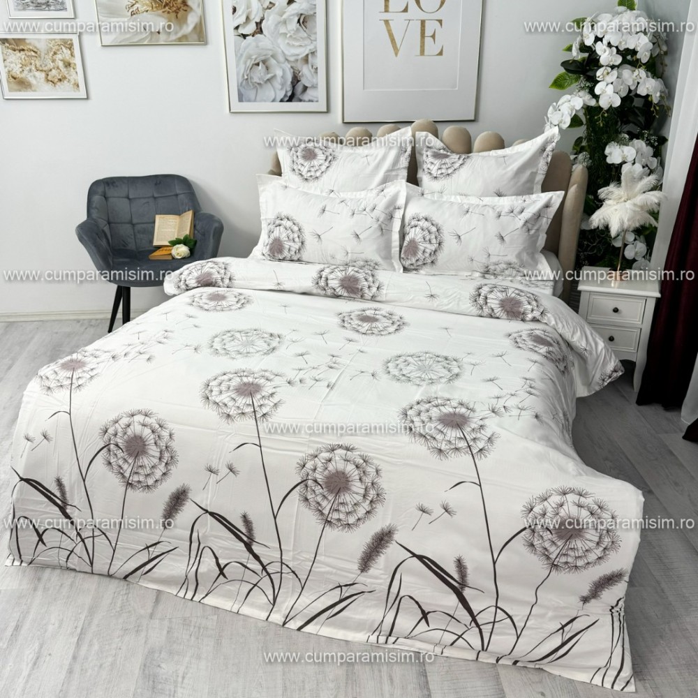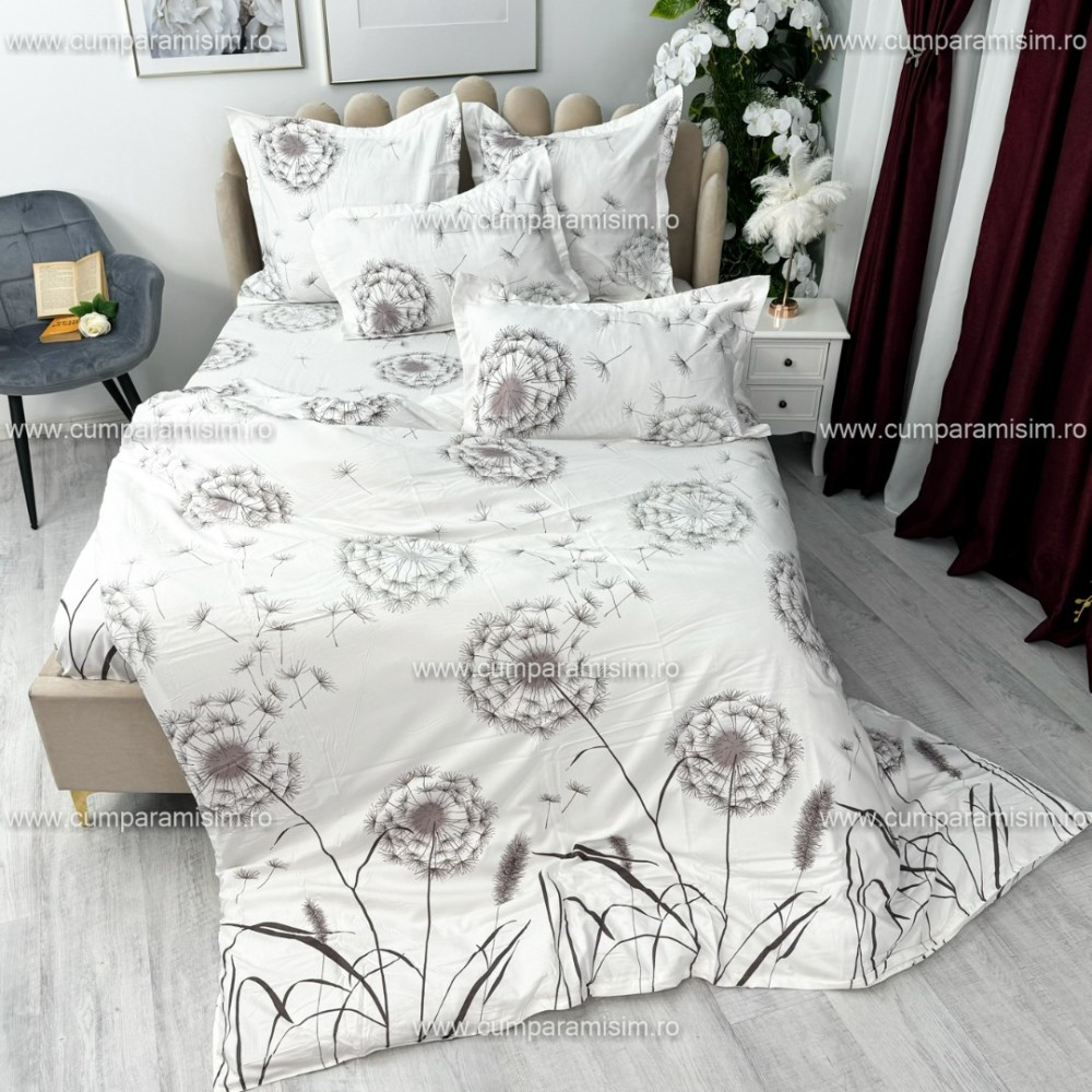 Lenjerie pat dublu, FINET, 6 piese, Gri, papadii, Alti producatori, cod produs: YNF2