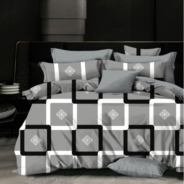 Lenjerie pat dublu, FINET, 6 piese, Gri, patrate, Johny Home Pucioasa, cod produs: DKF12