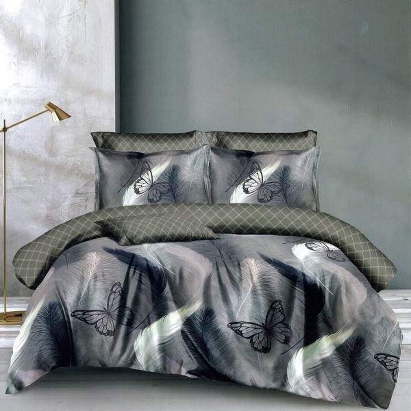 Lenjerie pat dublu, FINET, 6 piese, Gri, pene, fluturi, Johny Home Pucioasa, cod produs: DKF91