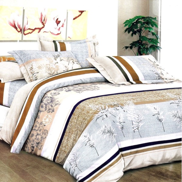 Lenjerie pat dublu, FINET, 6 piese, Gri-Bej, frunze, Alti producatori, cod produs: YNF56