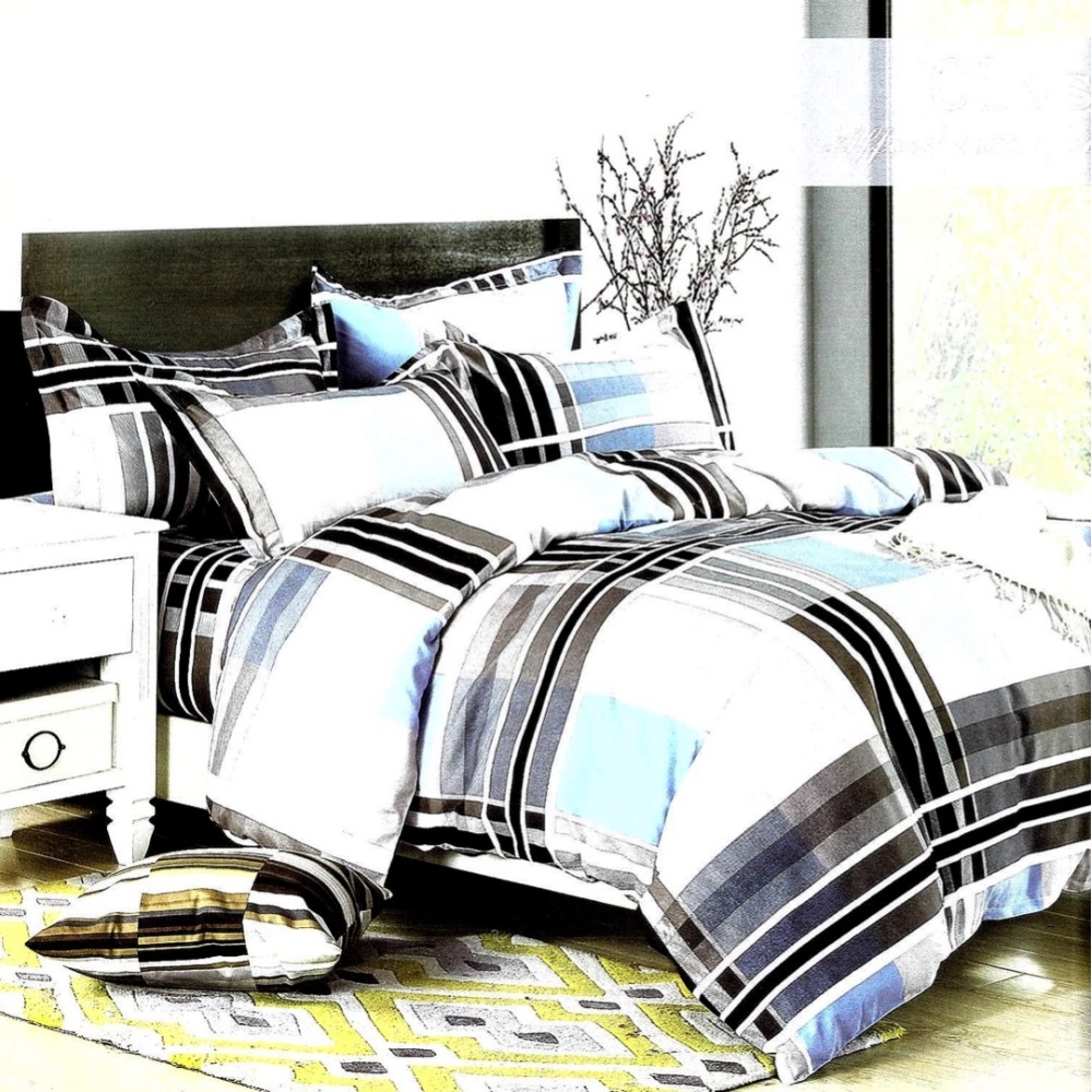 Lenjerie pat dublu, FINET, 6 piese, Gri-Bleu, carouri, Alti producatori, cod produs: YNF72