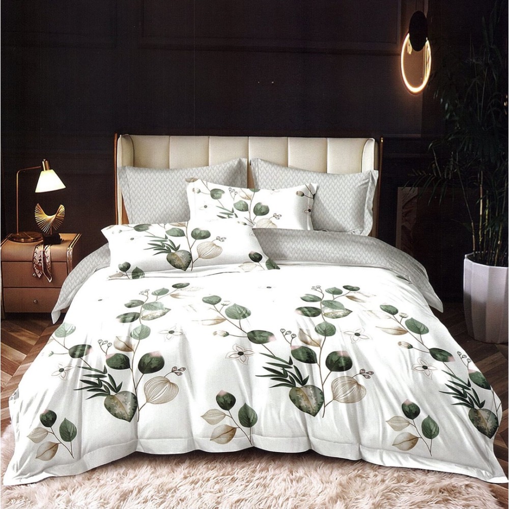 Lenjerie pat dublu, FINET, 6 piese, Gri-Verde, frunze, Johny Home Pucioasa, cod produs: DKF105