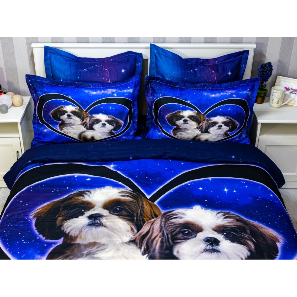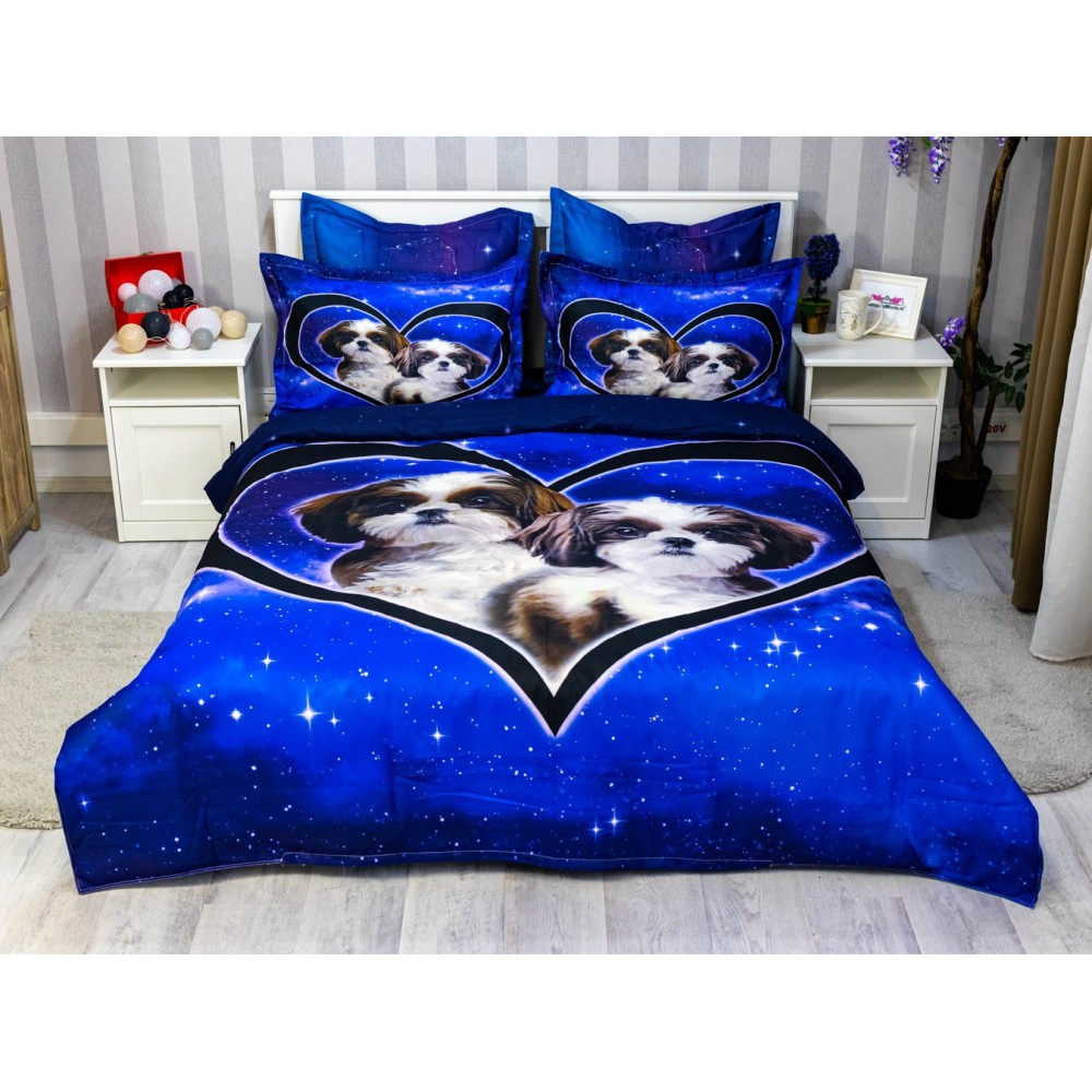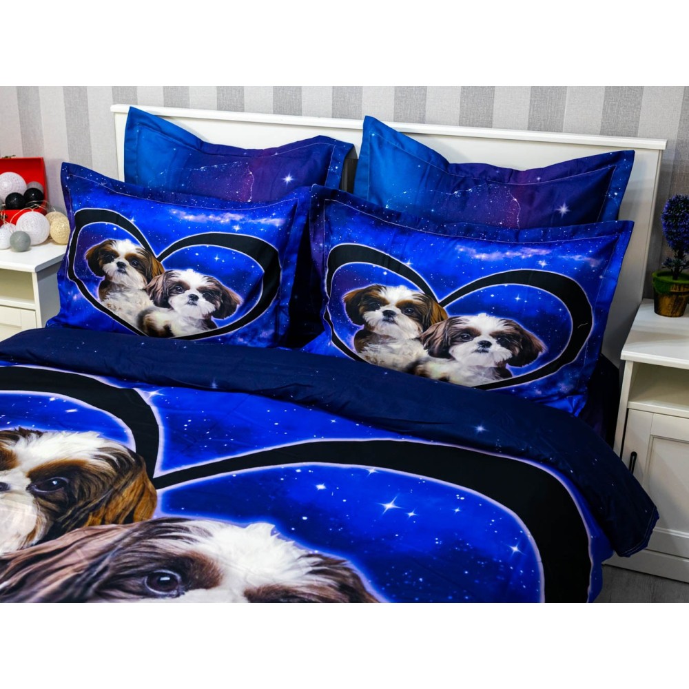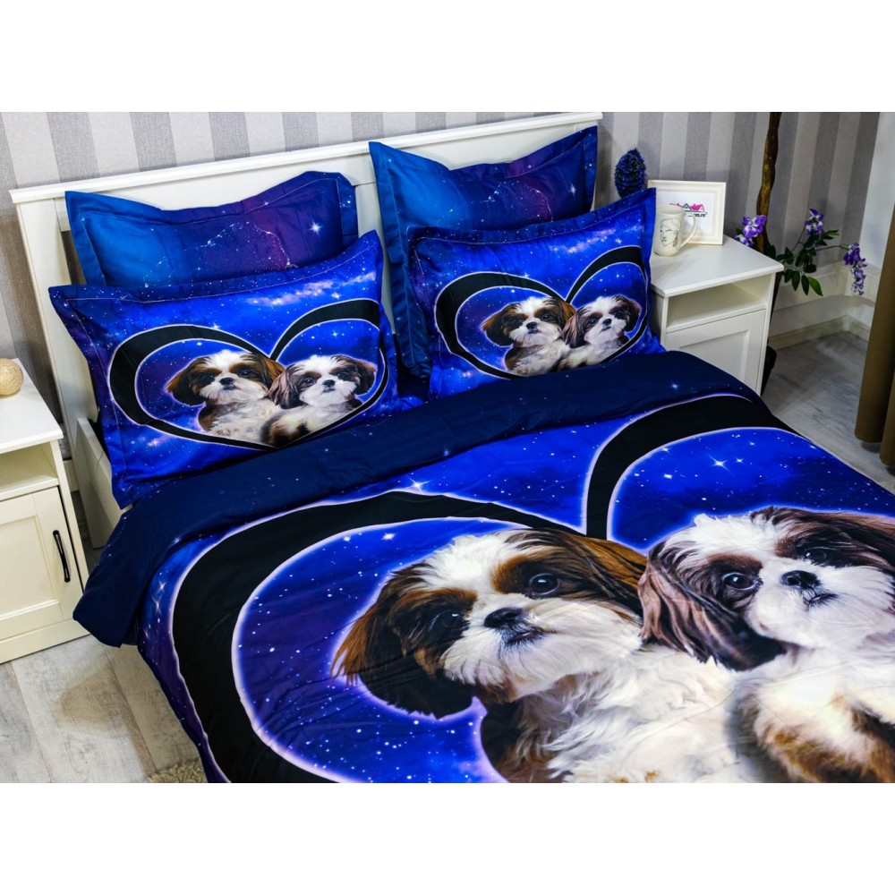 Lenjerie pat dublu, FINET, 6 piese, IDENTICA CU POZA, Albastru, catelusi, Johny Home Pucioasa, cod produs: SPR-A2-17