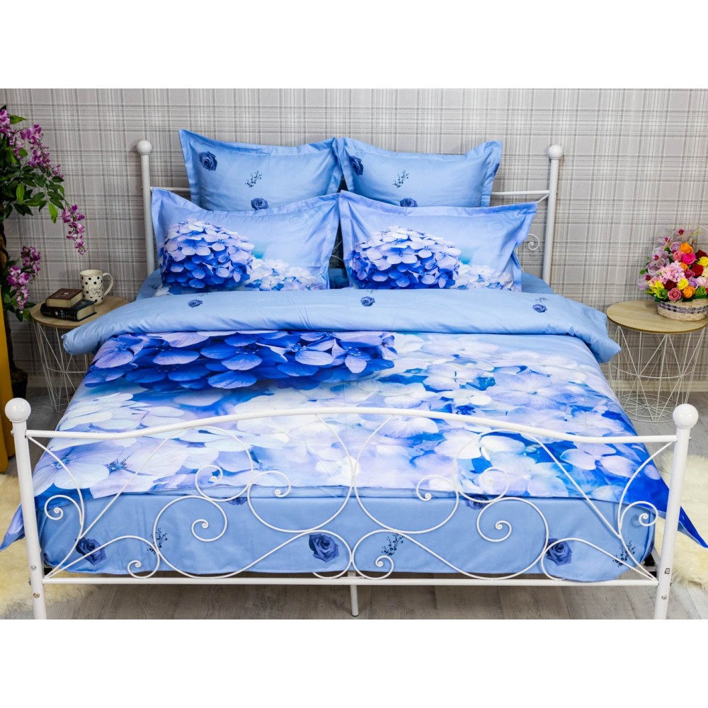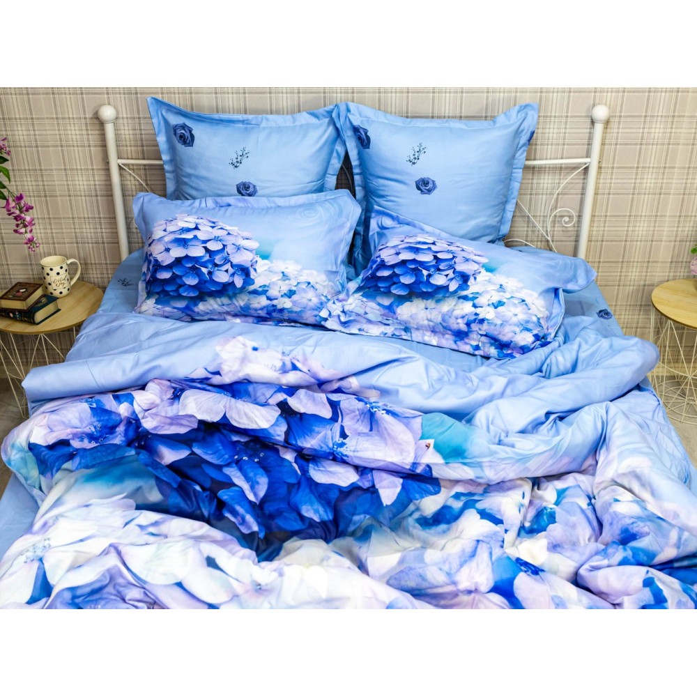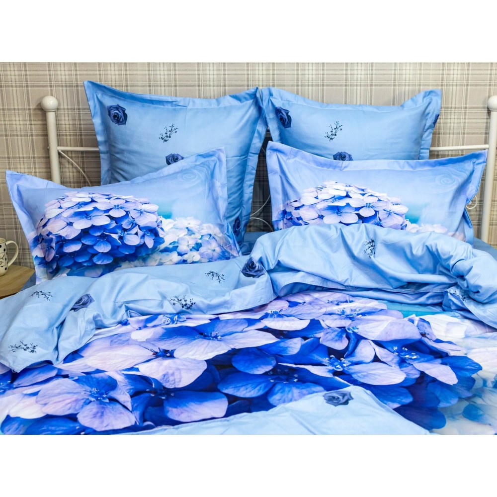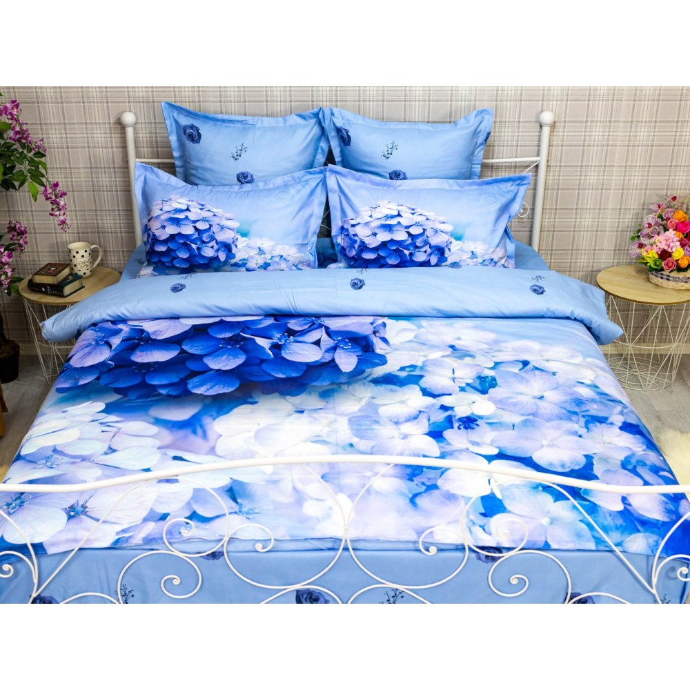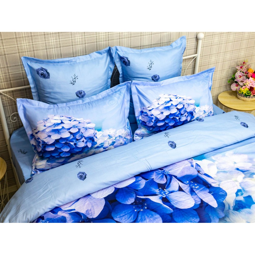 Lenjerie pat dublu, FINET, 6 piese, IDENTICA CU POZA, Albastru, hortensie, Johny Home Pucioasa, cod produs: SPR-A2-23