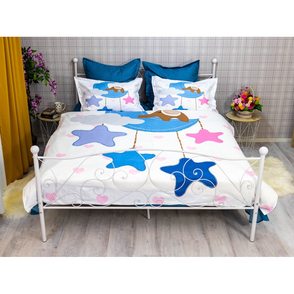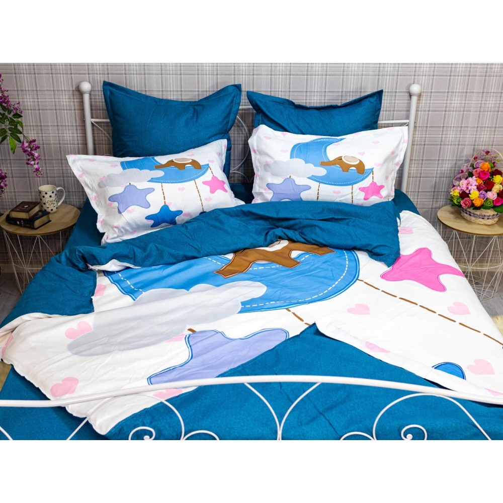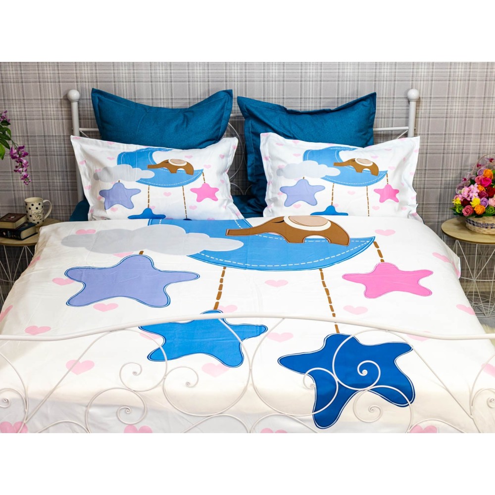 Lenjerie pat dublu, FINET, 6 piese, IDENTICA CU POZA, Albastru, stelute, Johny Home Pucioasa, cod produs: SPR-A2-42