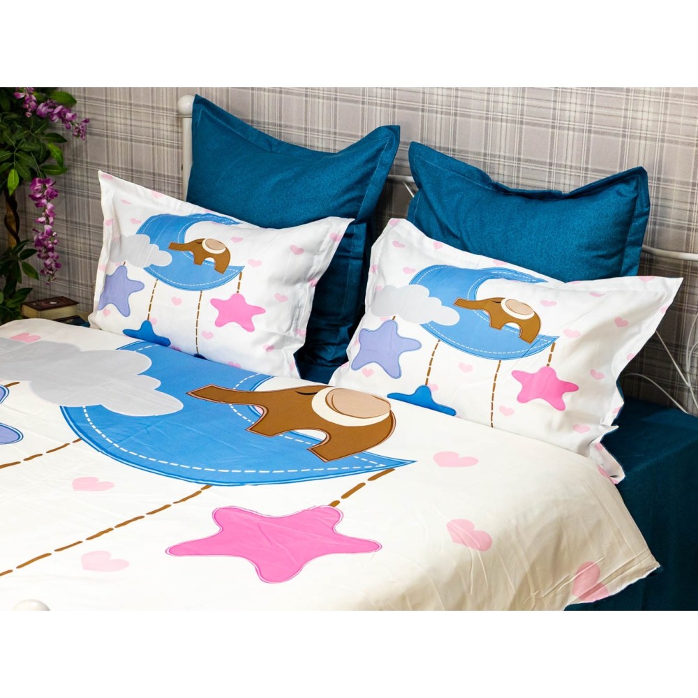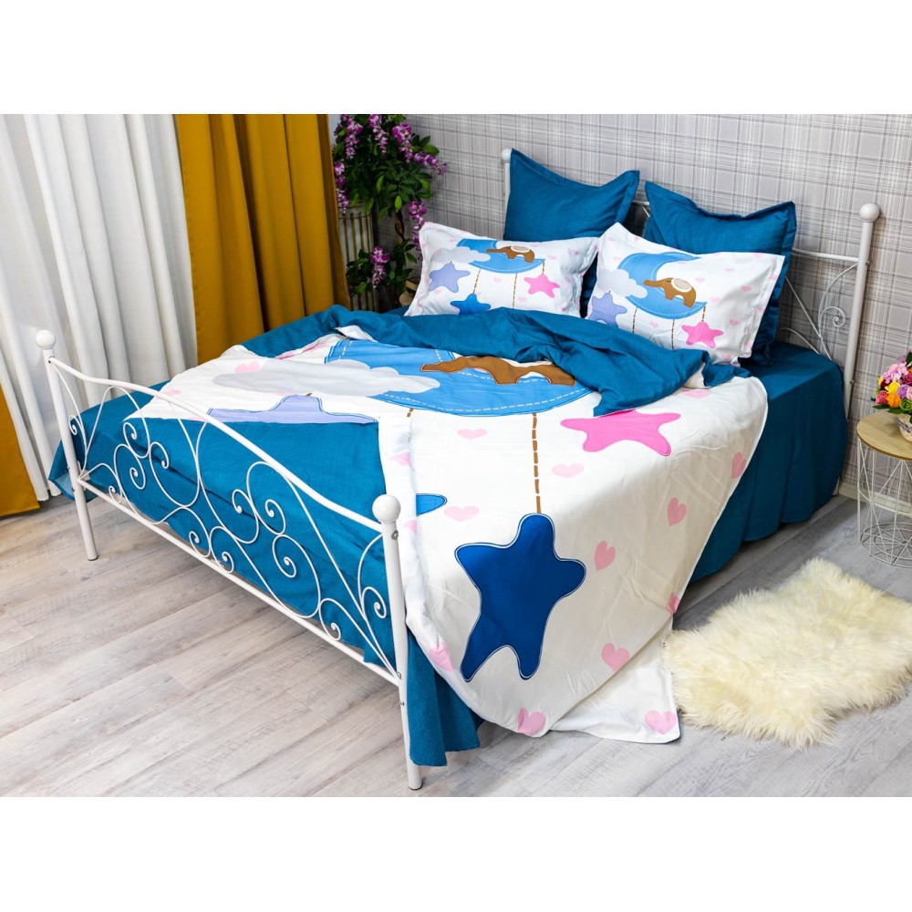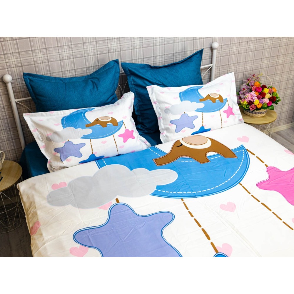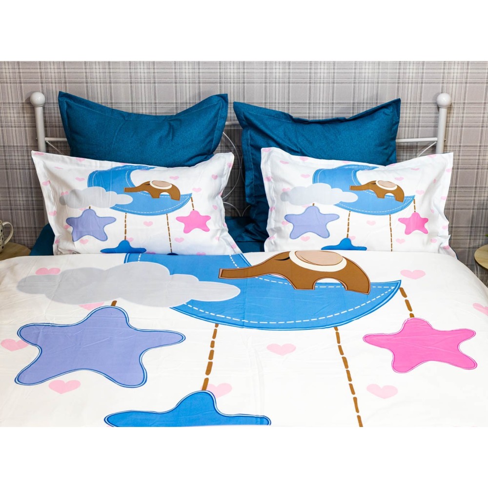 Lenjerie pat dublu, FINET, 6 piese, IDENTICA CU POZA, Albastru, stelute, Johny Home Pucioasa, cod produs: SPR-A2-42