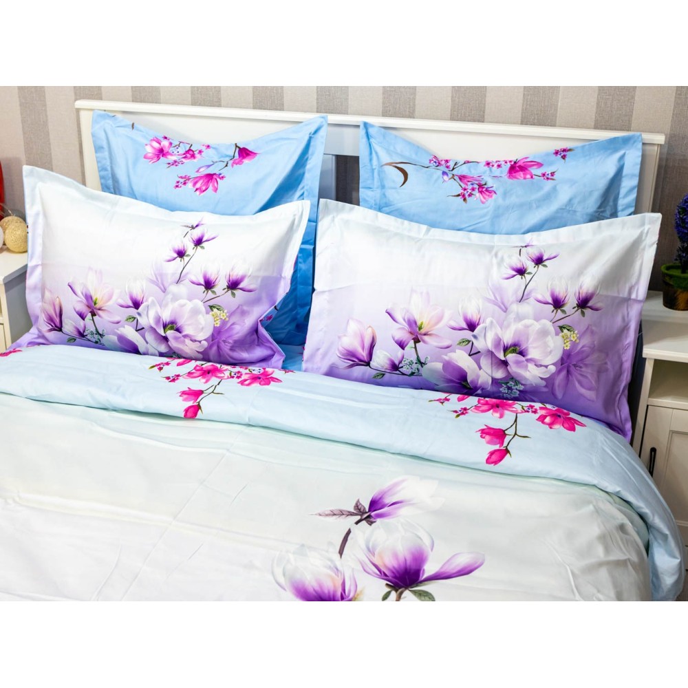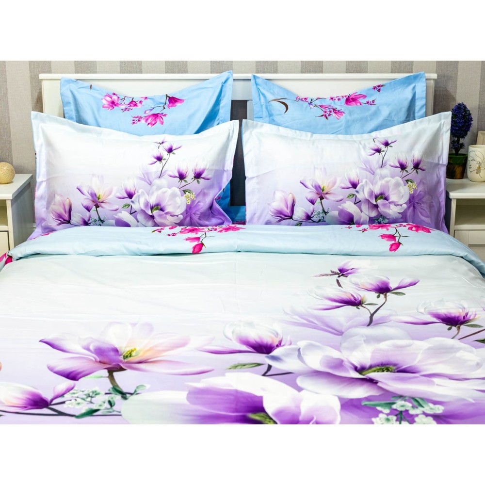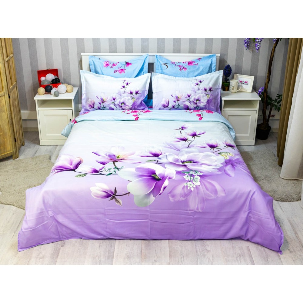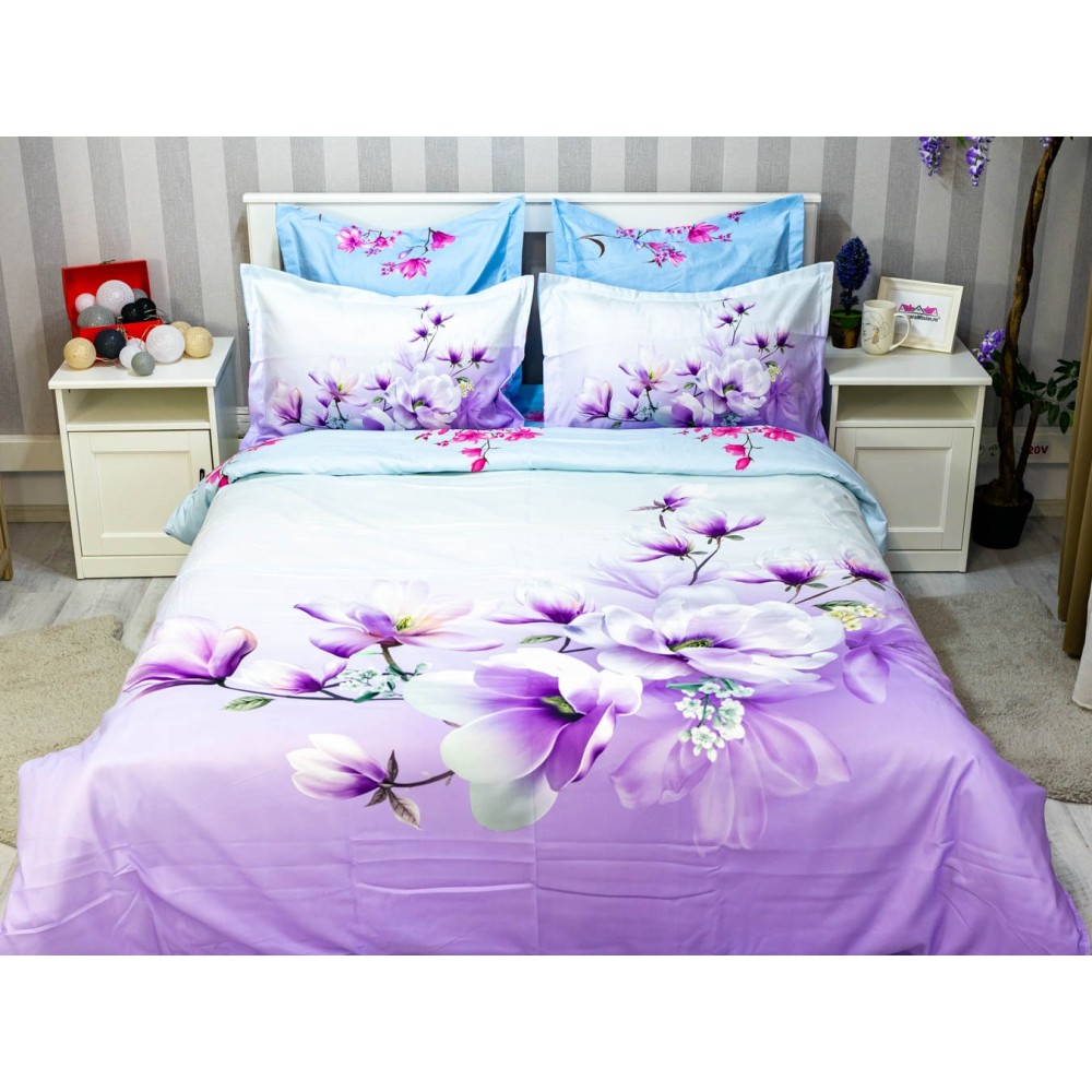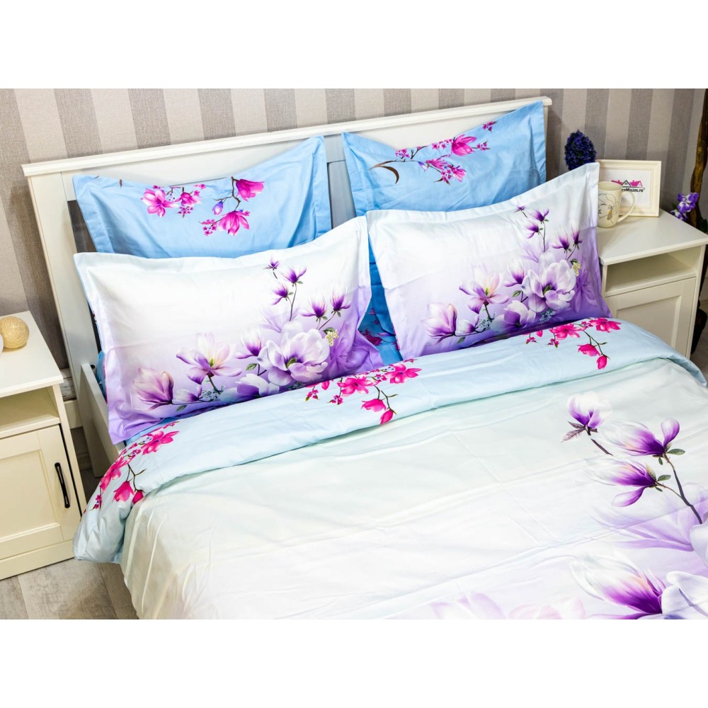 Lenjerie pat dublu, FINET, 6 piese, IDENTICA CU POZA, Lila, magnolii, Johny Home Pucioasa, cod produs: SPR-A2-41
