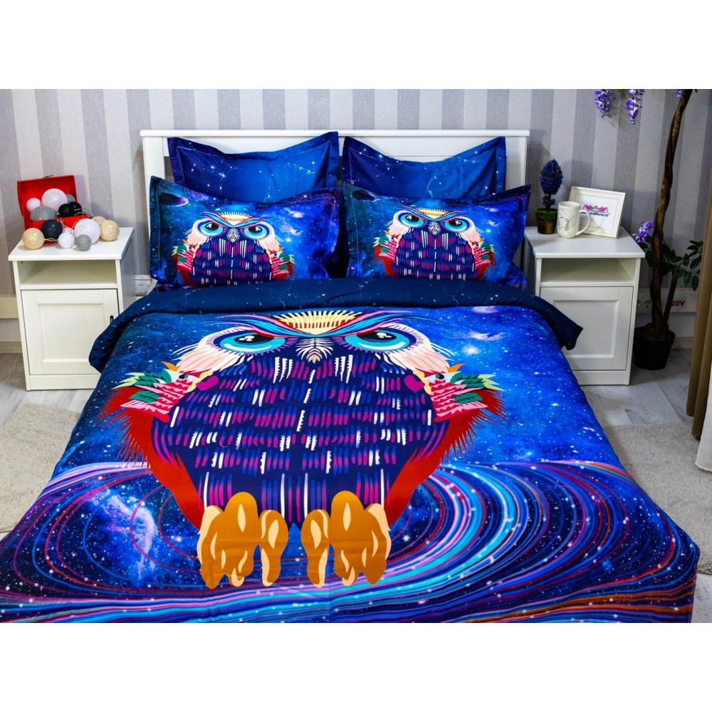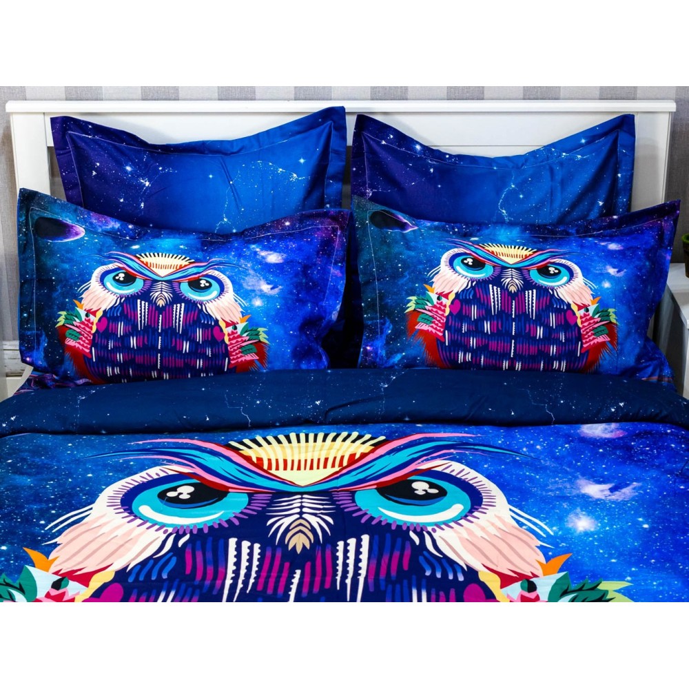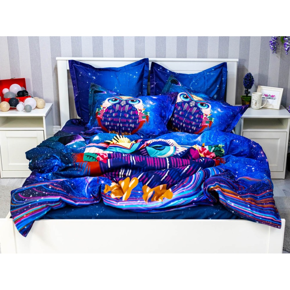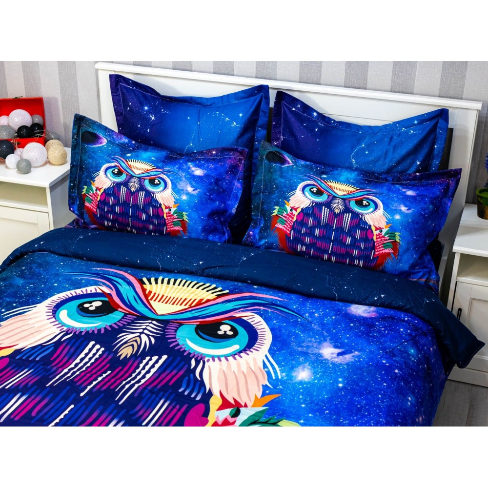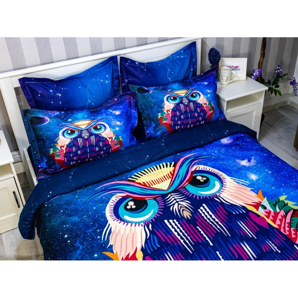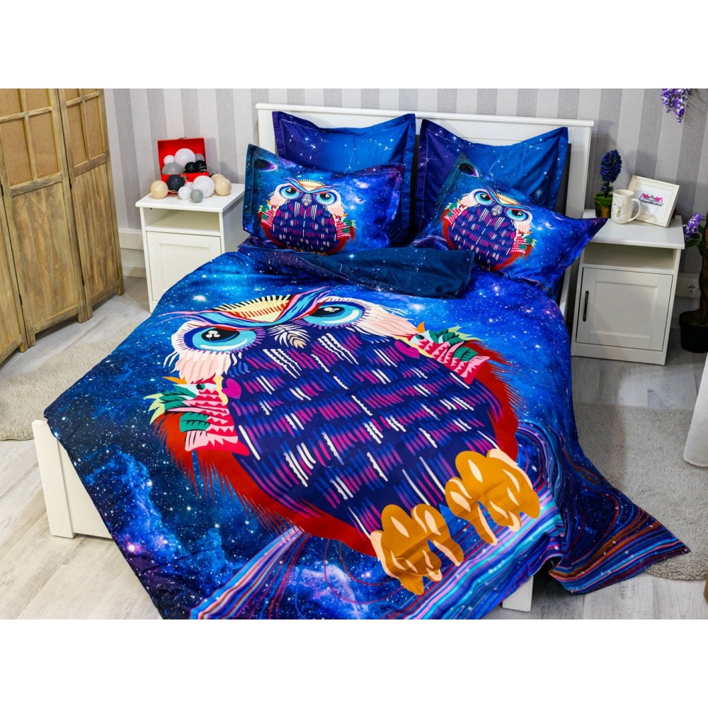 Lenjerie pat dublu, FINET, 6 piese, IDENTICA CU POZA, Mov, bufnita, Johny Home Pucioasa, cod produs: SPR-A2-16