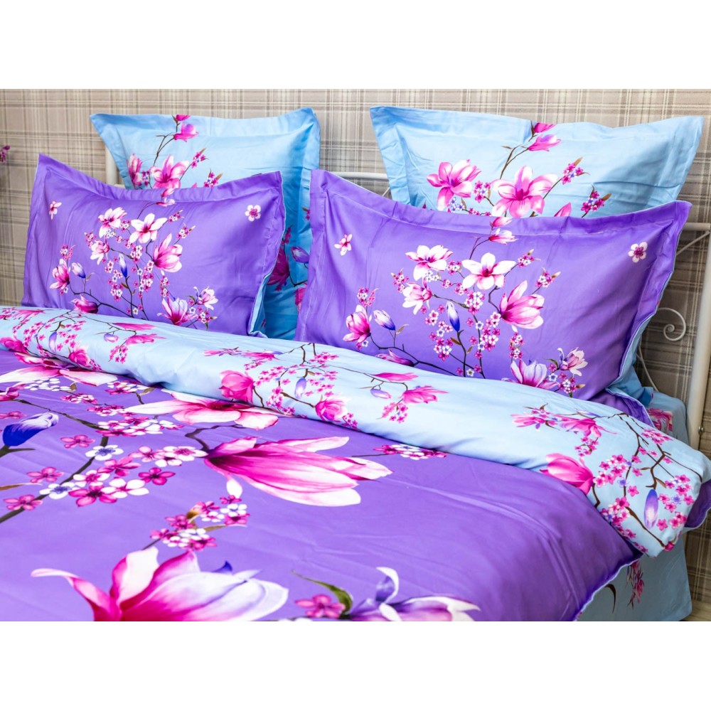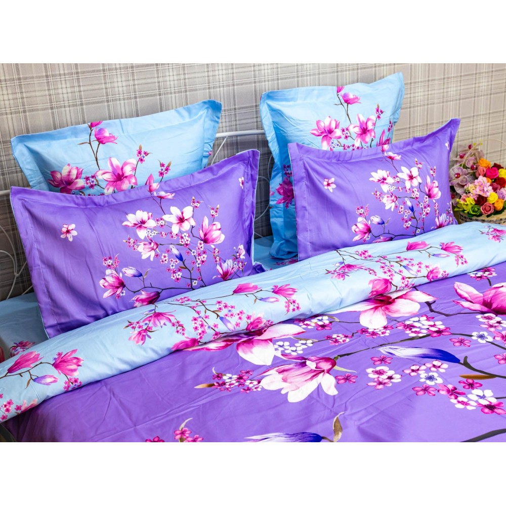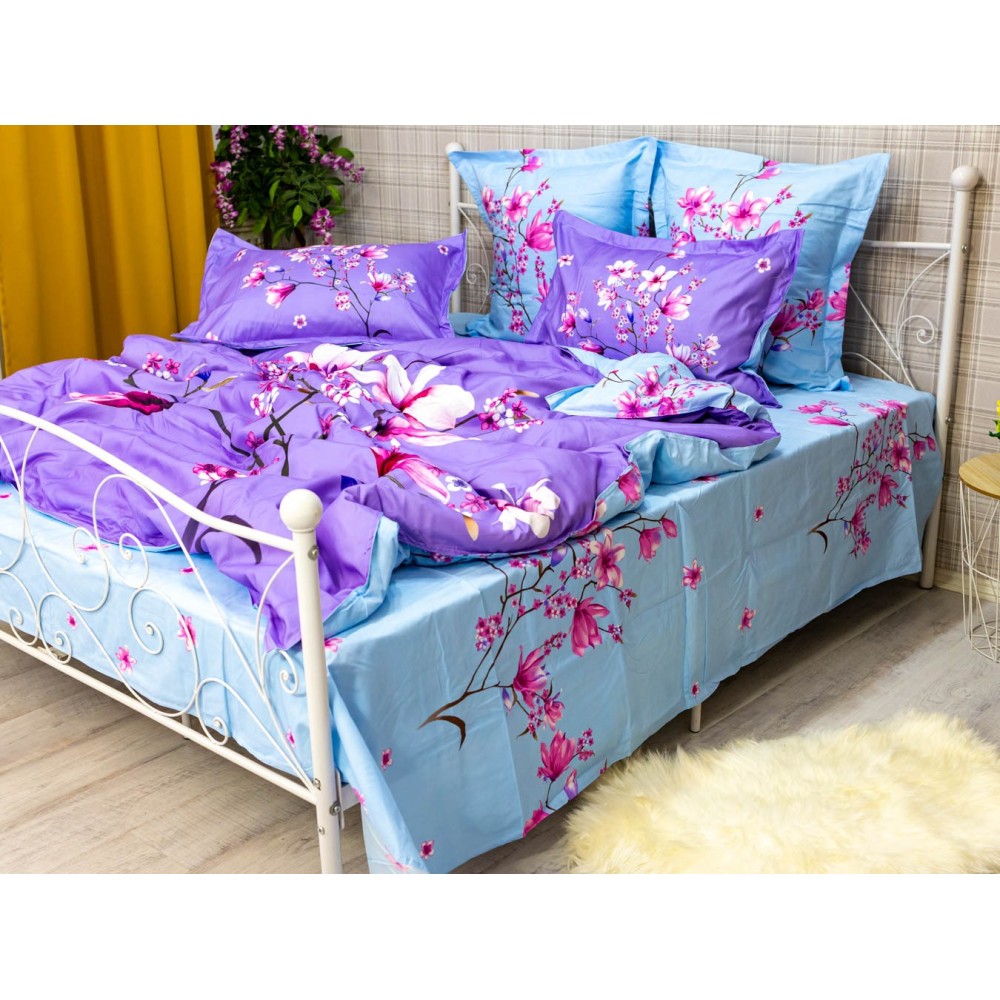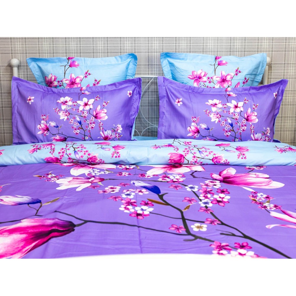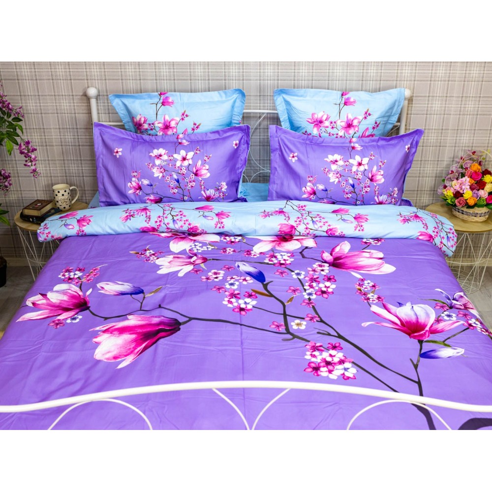 Lenjerie pat dublu, FINET, 6 piese, IDENTICA CU POZA, Mov, magnolii, Johny Home Pucioasa, cod produs: SPR-A2-05
