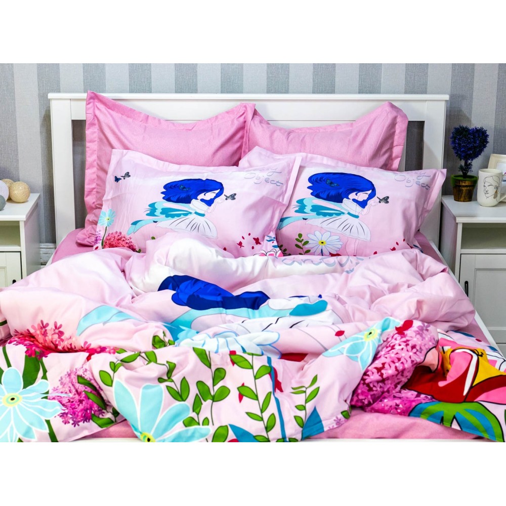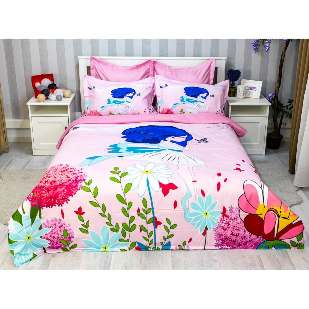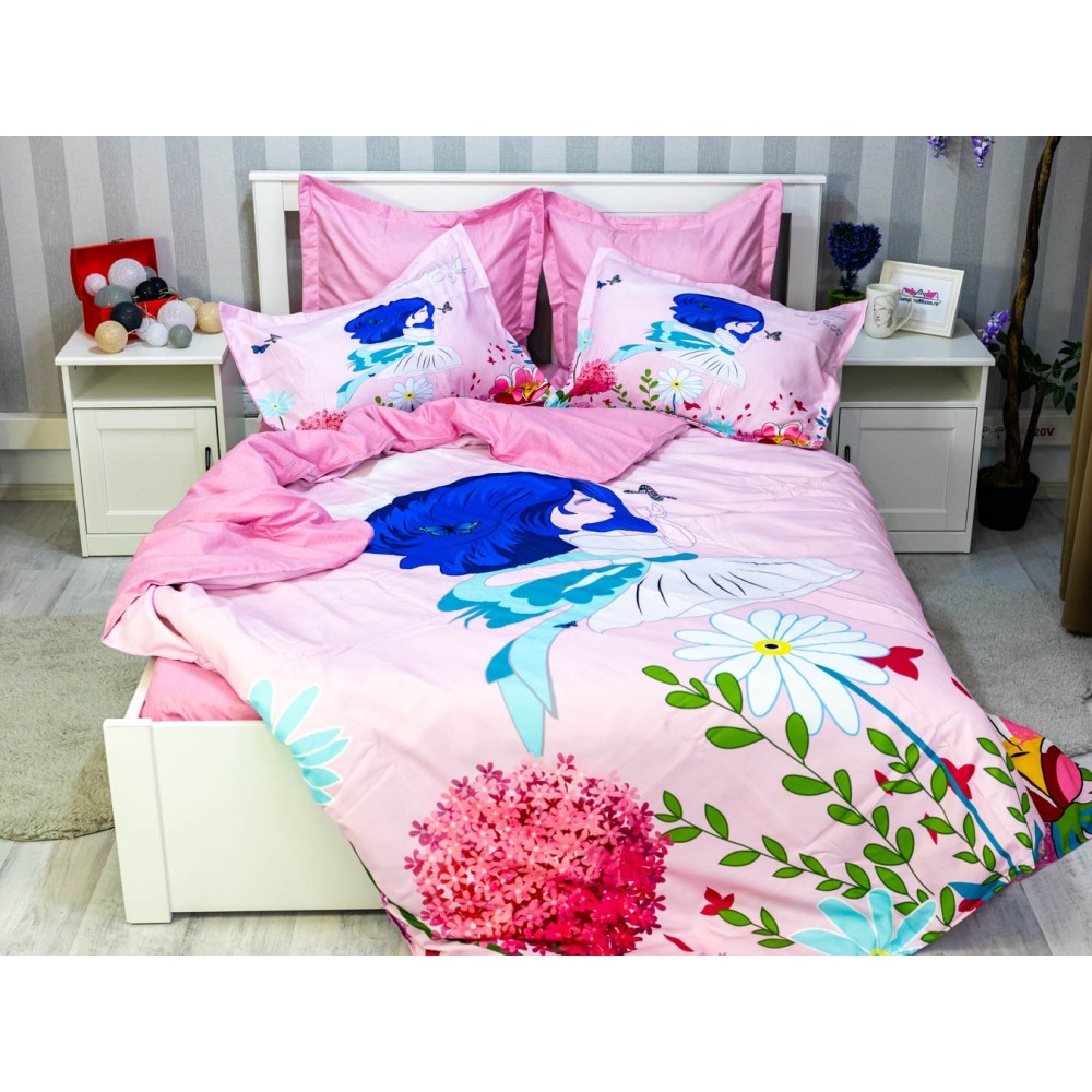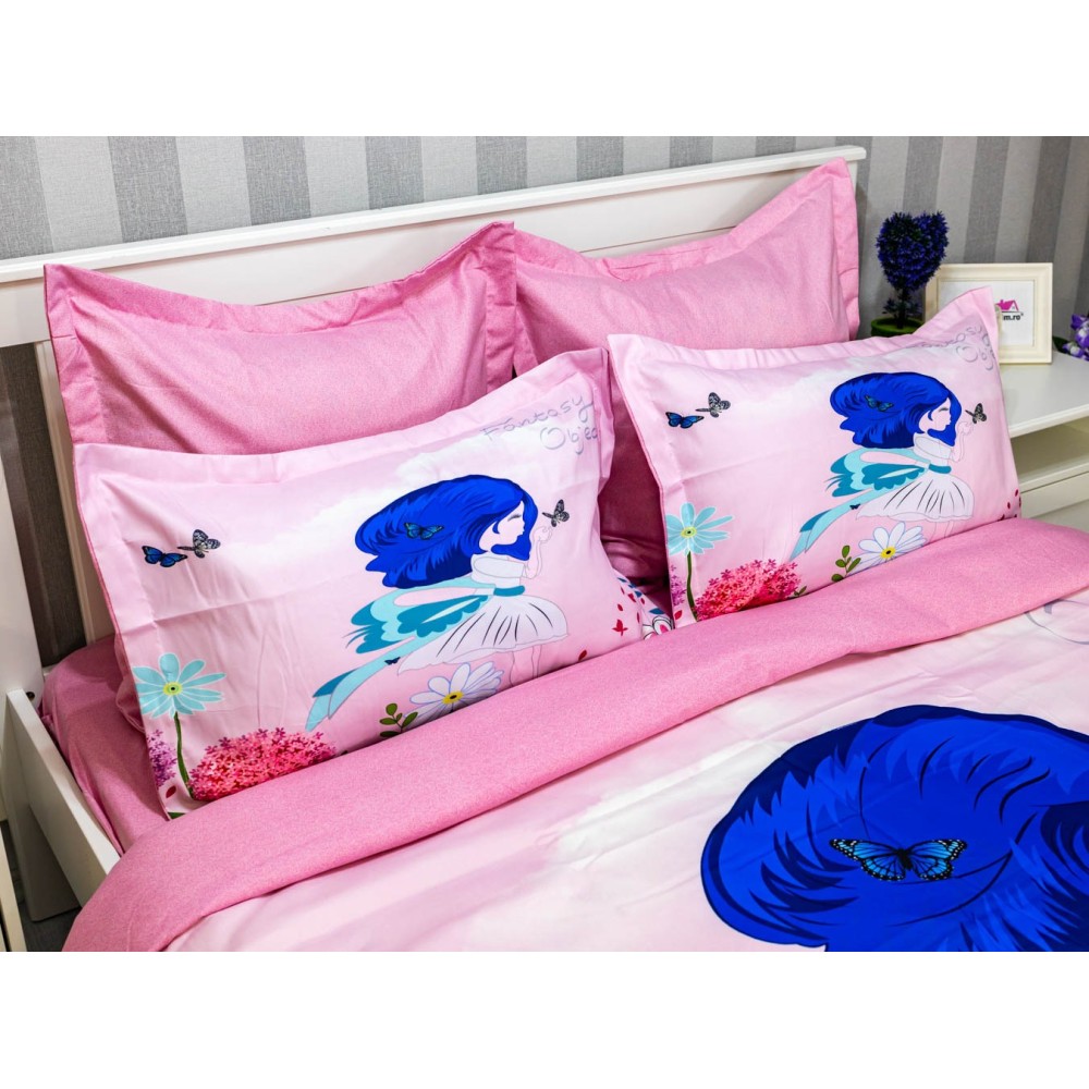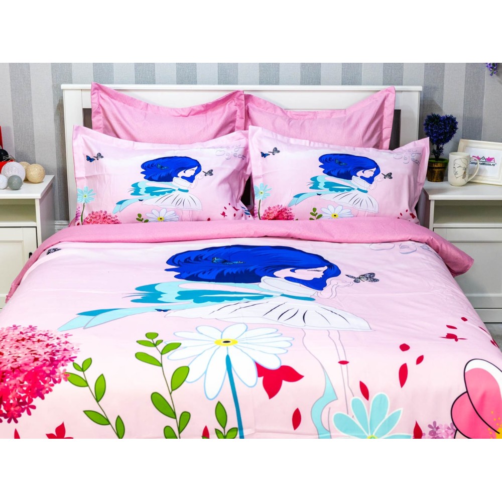 Lenjerie pat dublu, FINET, 6 piese, IDENTICA CU POZA, Roz, flori, Johny Home Pucioasa, cod produs: SPR-A2-25