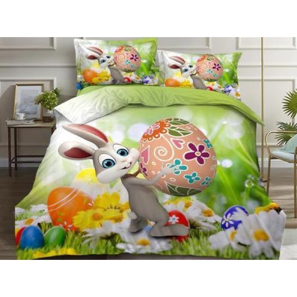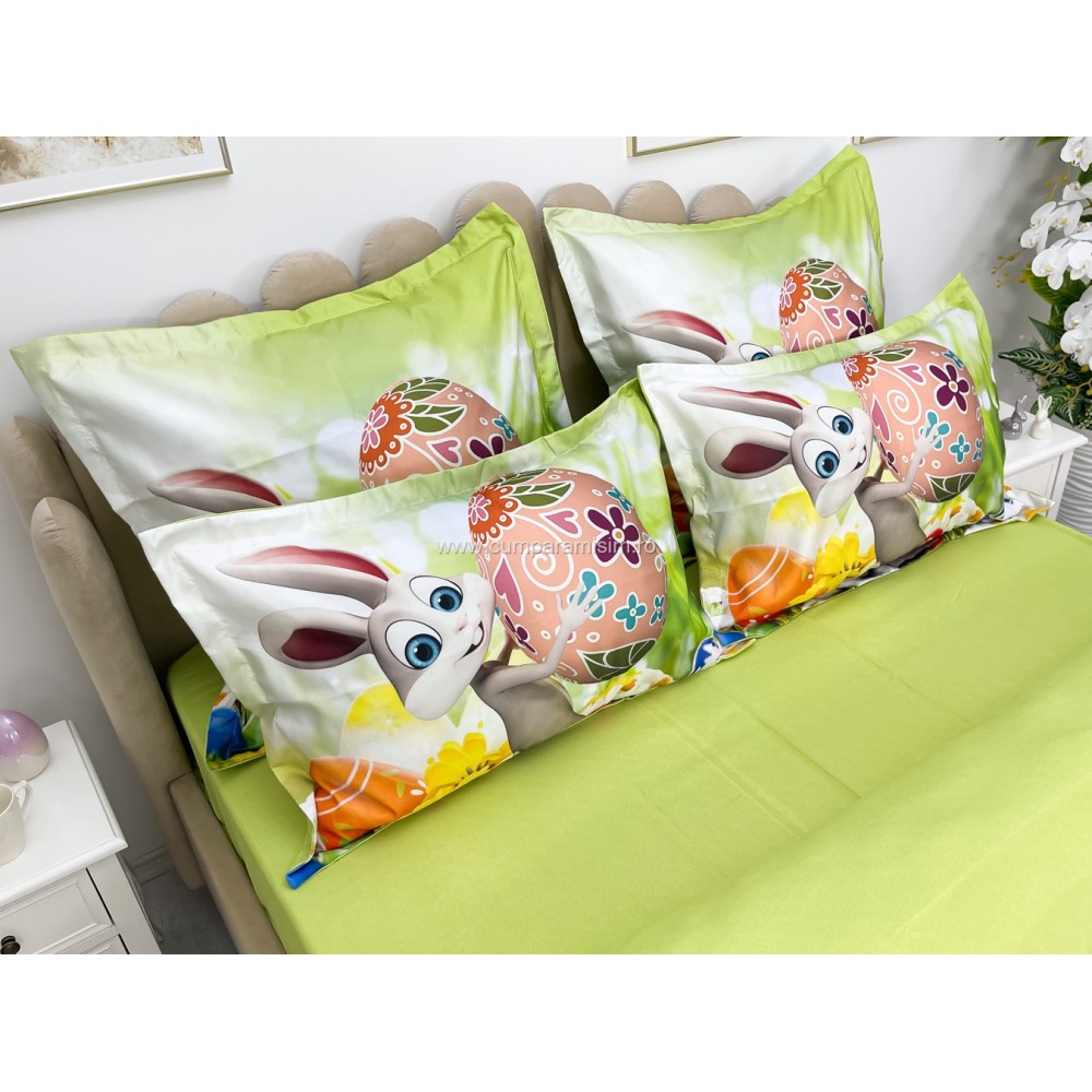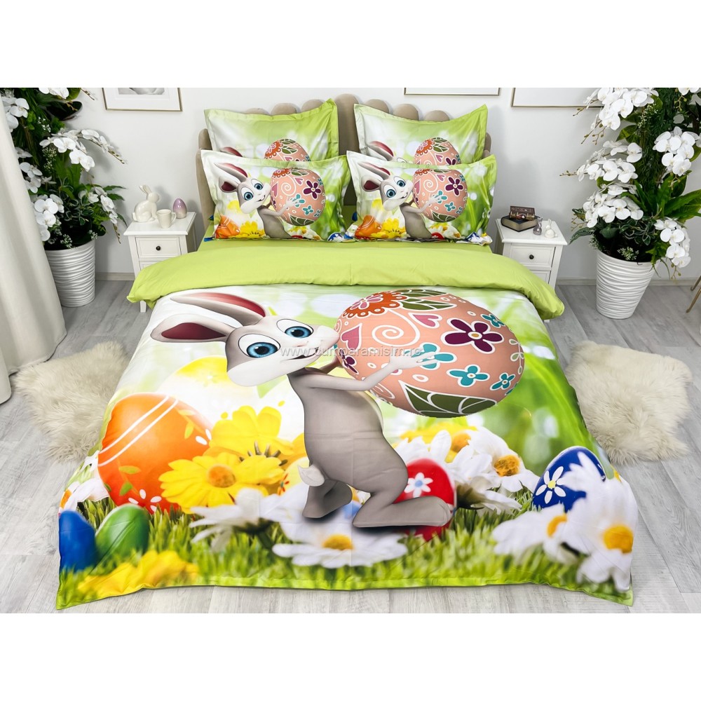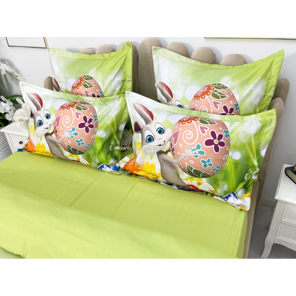 Lenjerie pat dublu, FINET, 6 piese, IDENTICA CU POZA, Verde-Multicolor, iepuras, flori, Alti producatori, cod produs: FYN257