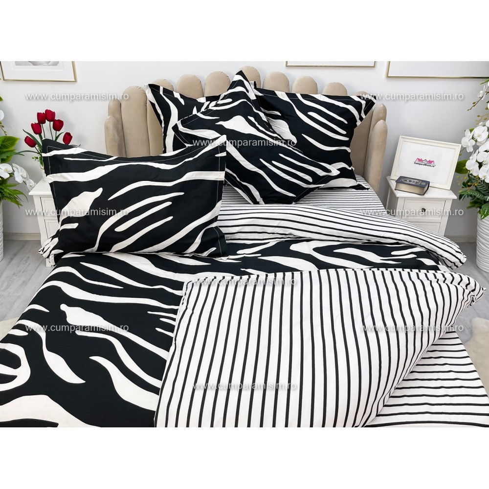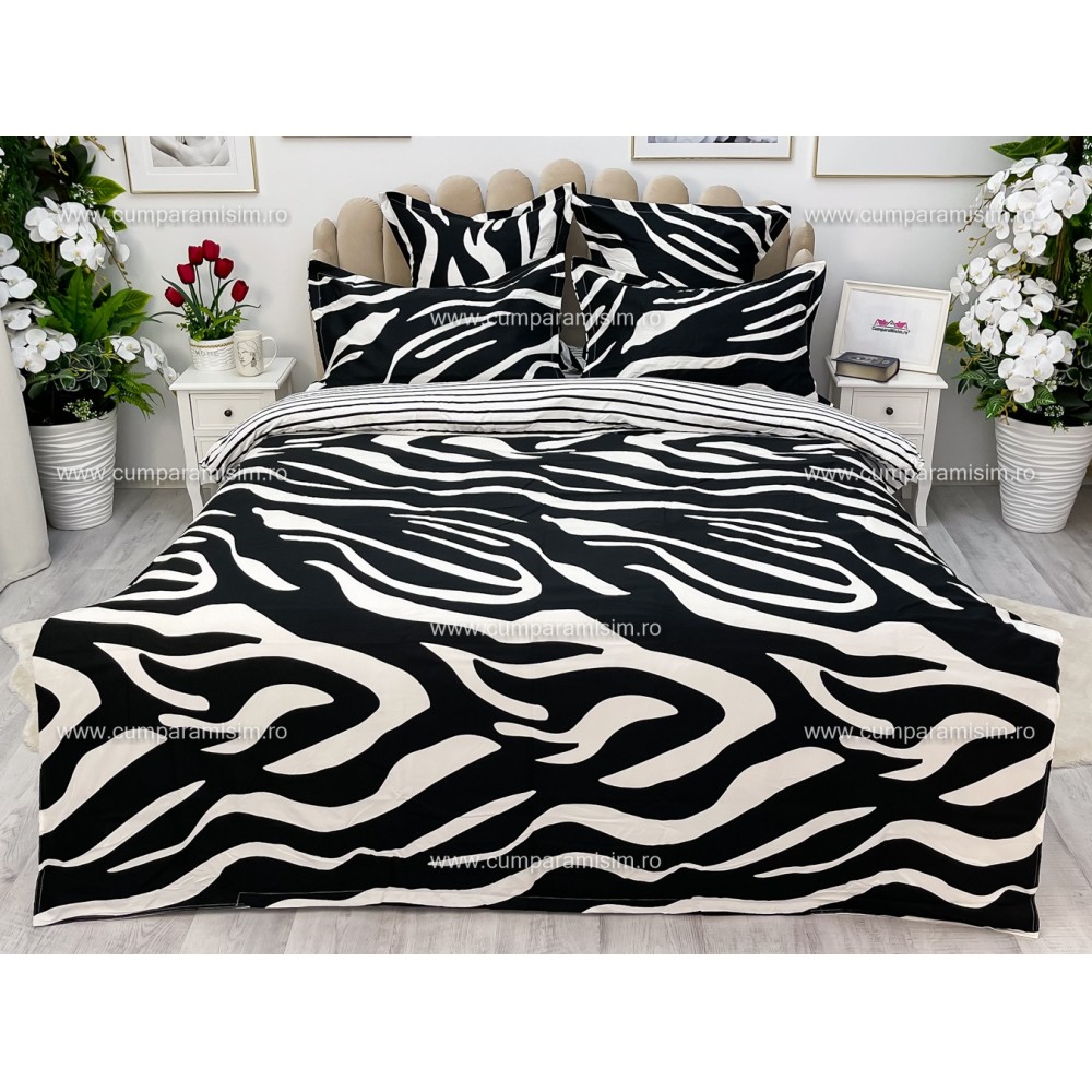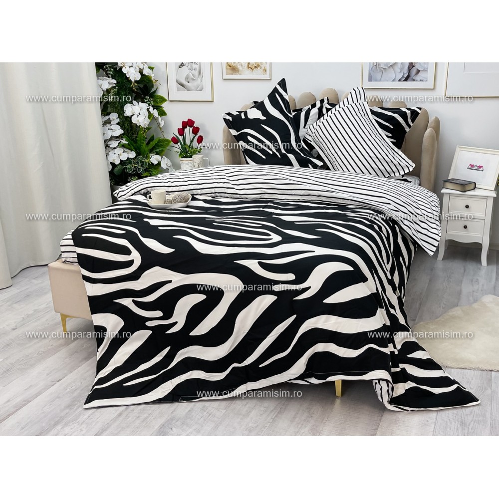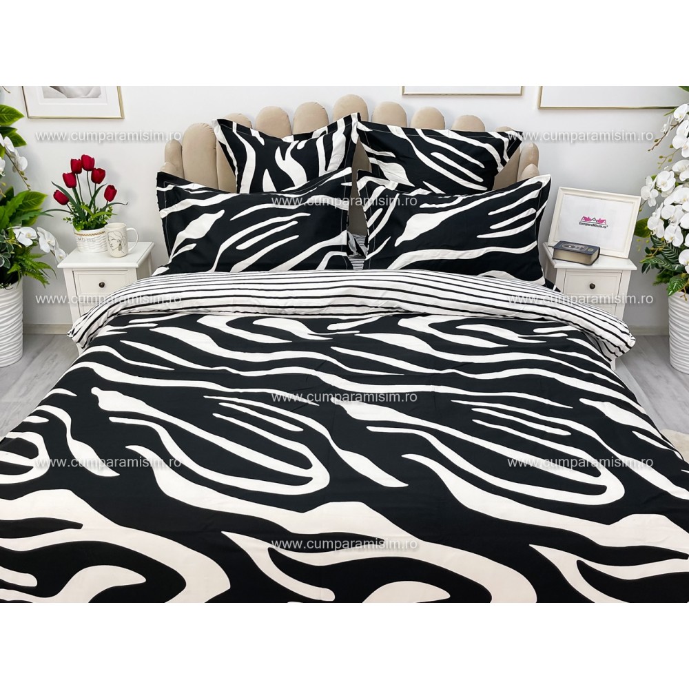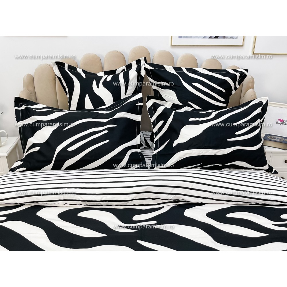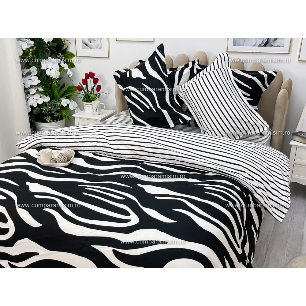 Lenjerie pat dublu, FINET, 6 piese, Jojo Home, Alb-Negru, animal print, cod produs: JOF39