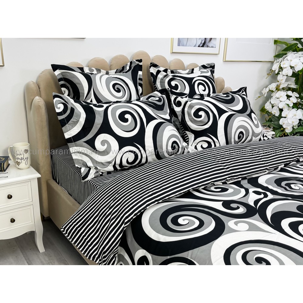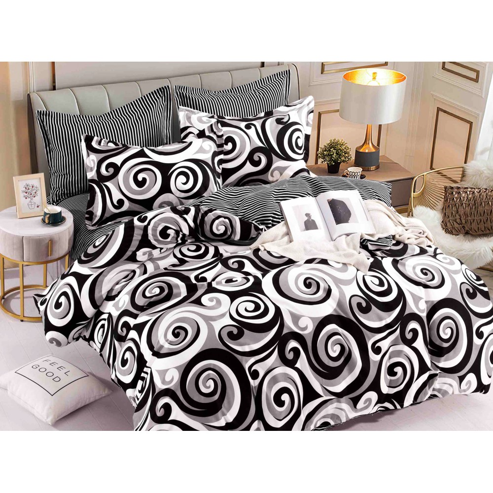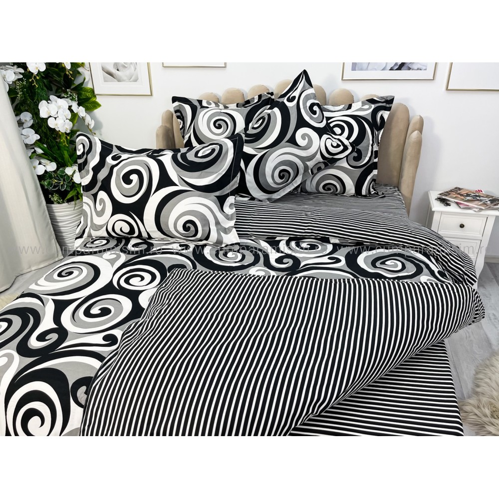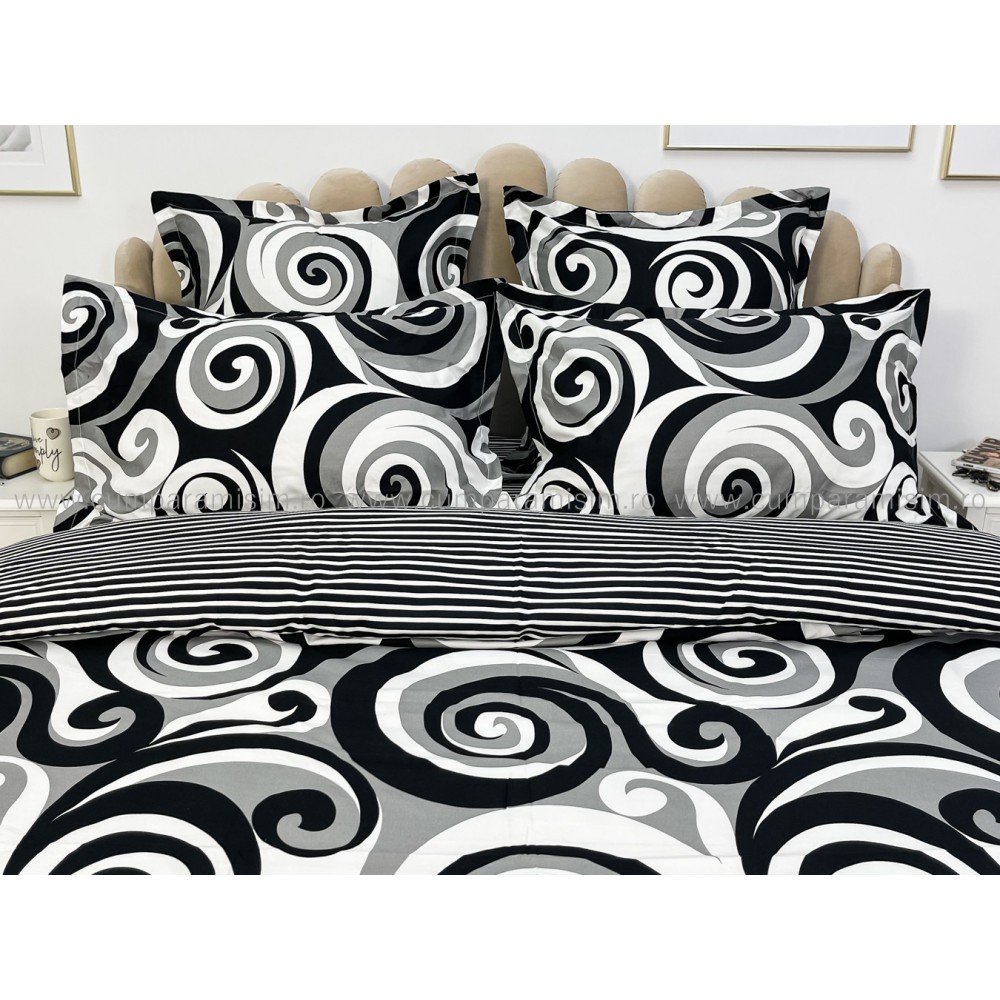 Lenjerie pat dublu, FINET, 6 piese, Jojo Home, Alb-Negru, model abstract, cod produs: JOF82