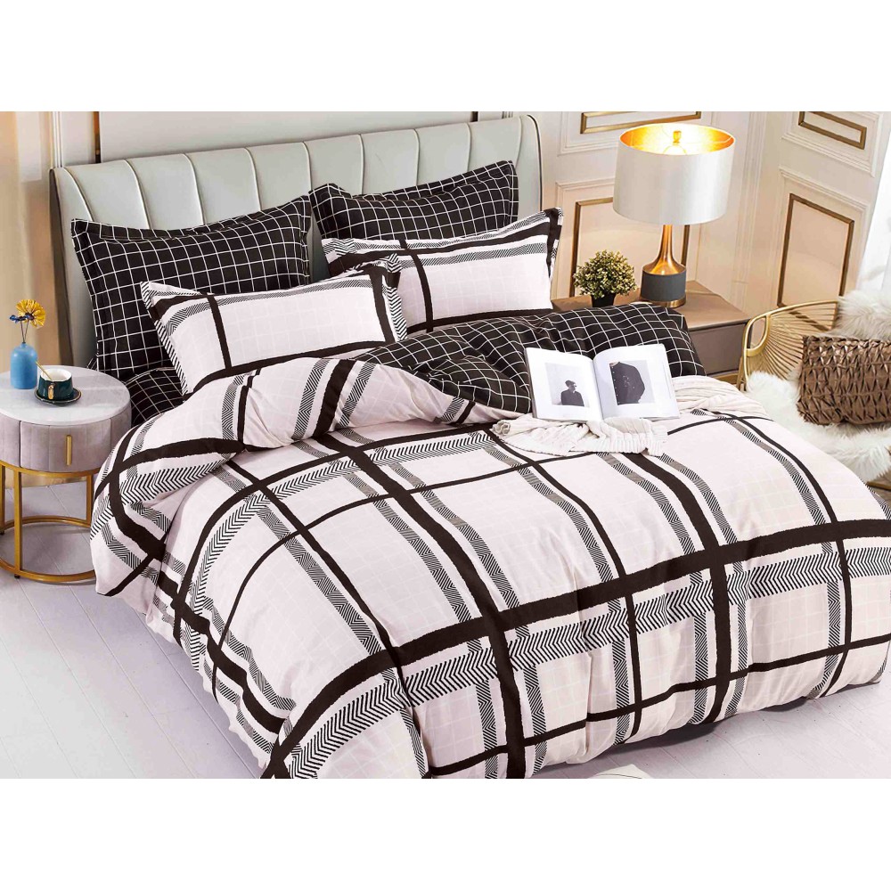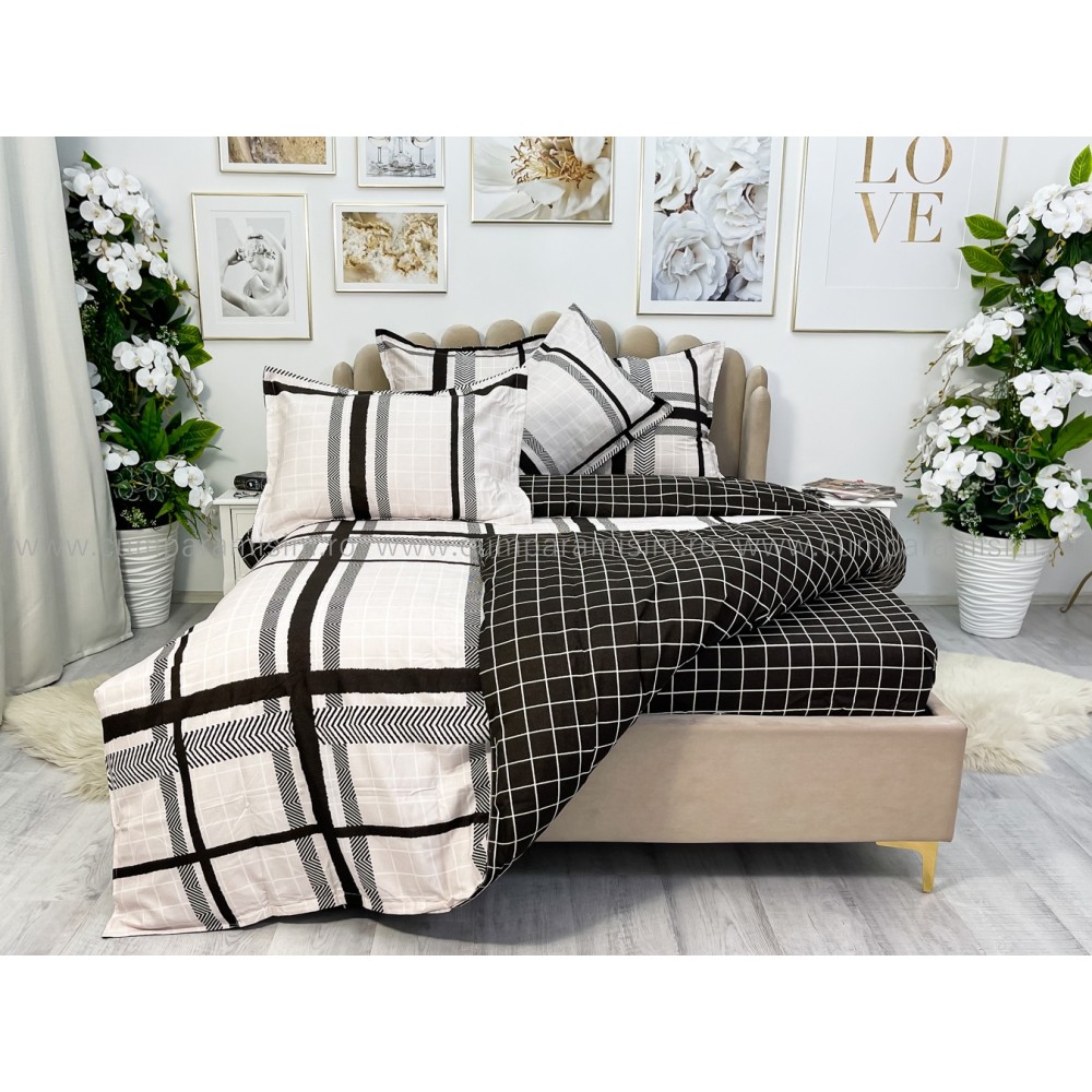Lenjerie pat dublu, FINET, 6 piese, Jojo Home, Crem-Negru, dungi, cod produs: JOF88
