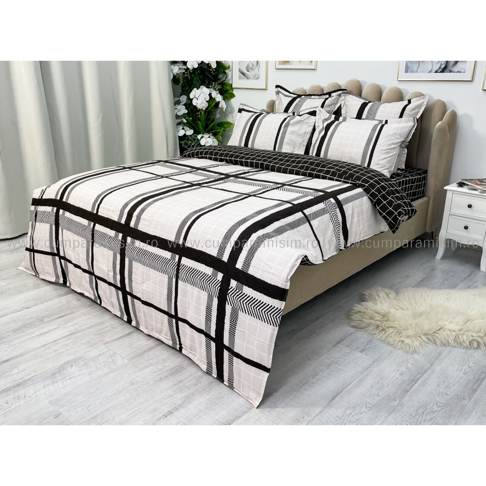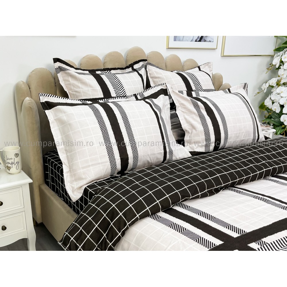 Iti recomandam cu incredere aceasta lenjerie pentru pat dublu cu 6 piese, confectionata din 100% bumbac, tesatura tip finet, ce cu siguranta va asigura esteticul perfect pentru dormitorul tau, prin design-ul modern si culorile rafinate.