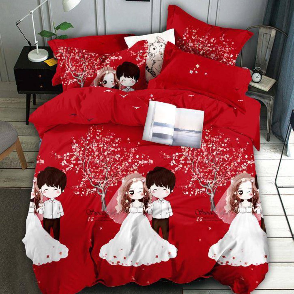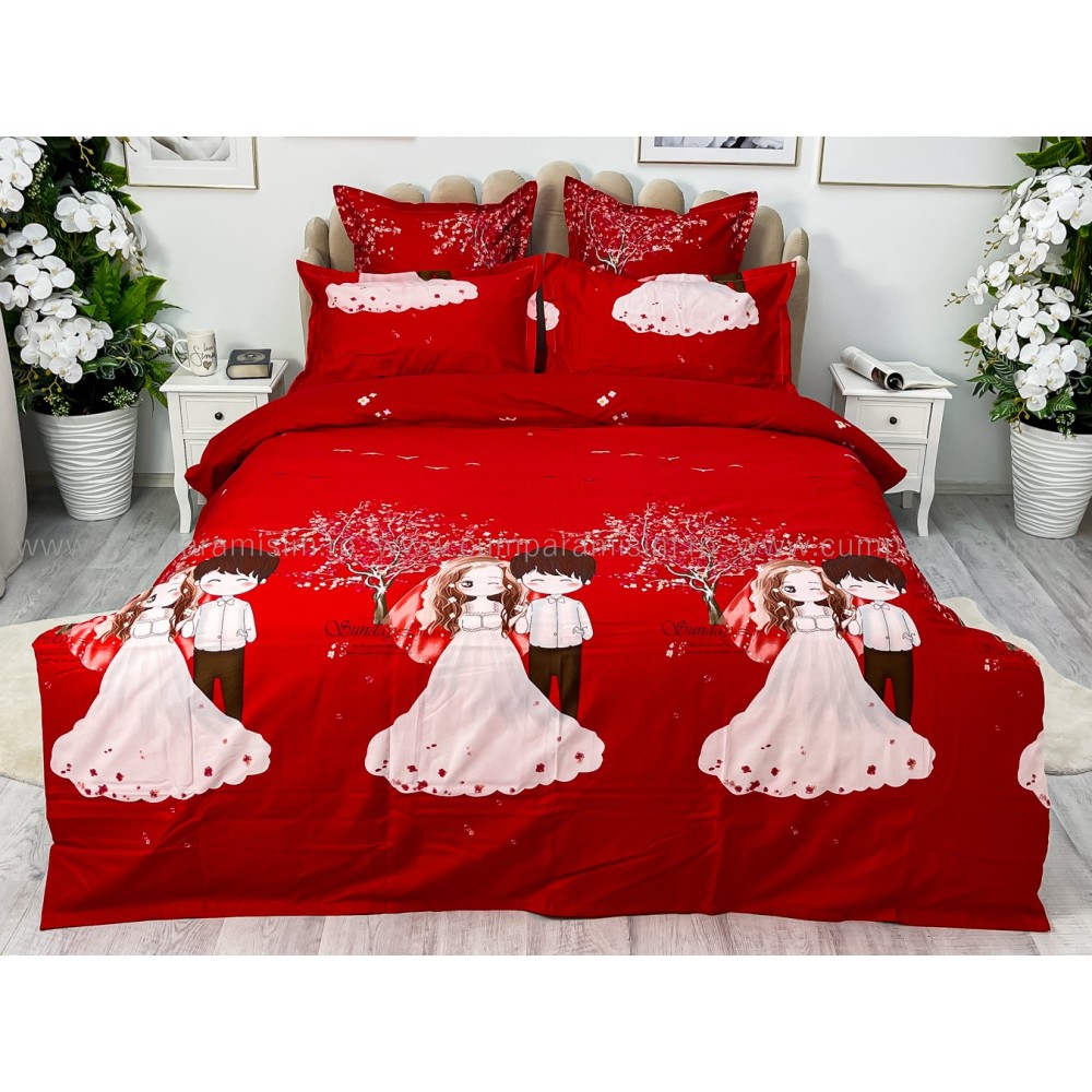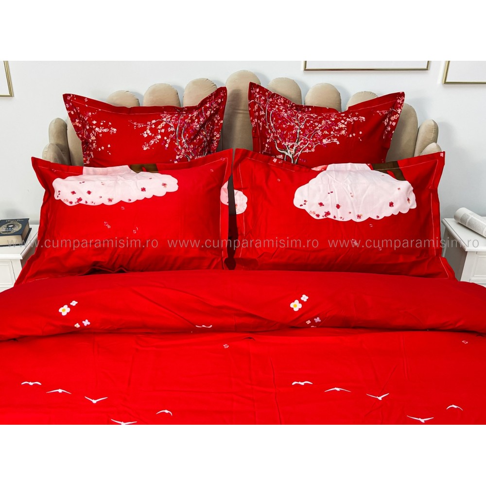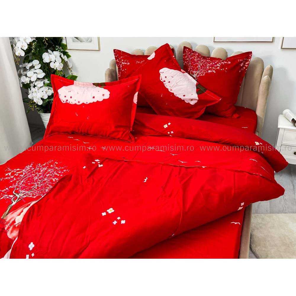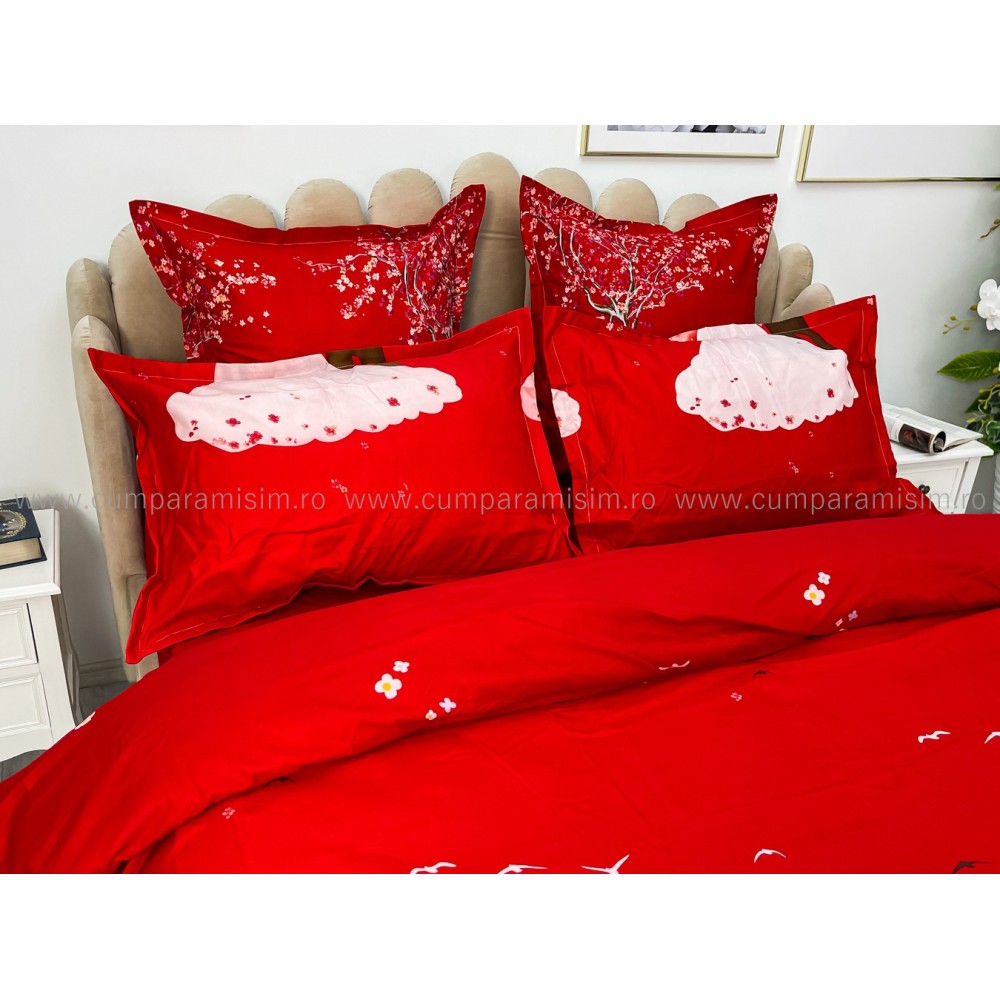Lenjerie pat dublu, FINET, 6 piese, Jojo Home, Rosu-Multicolor, indragostiti, cod produs: JOF12
